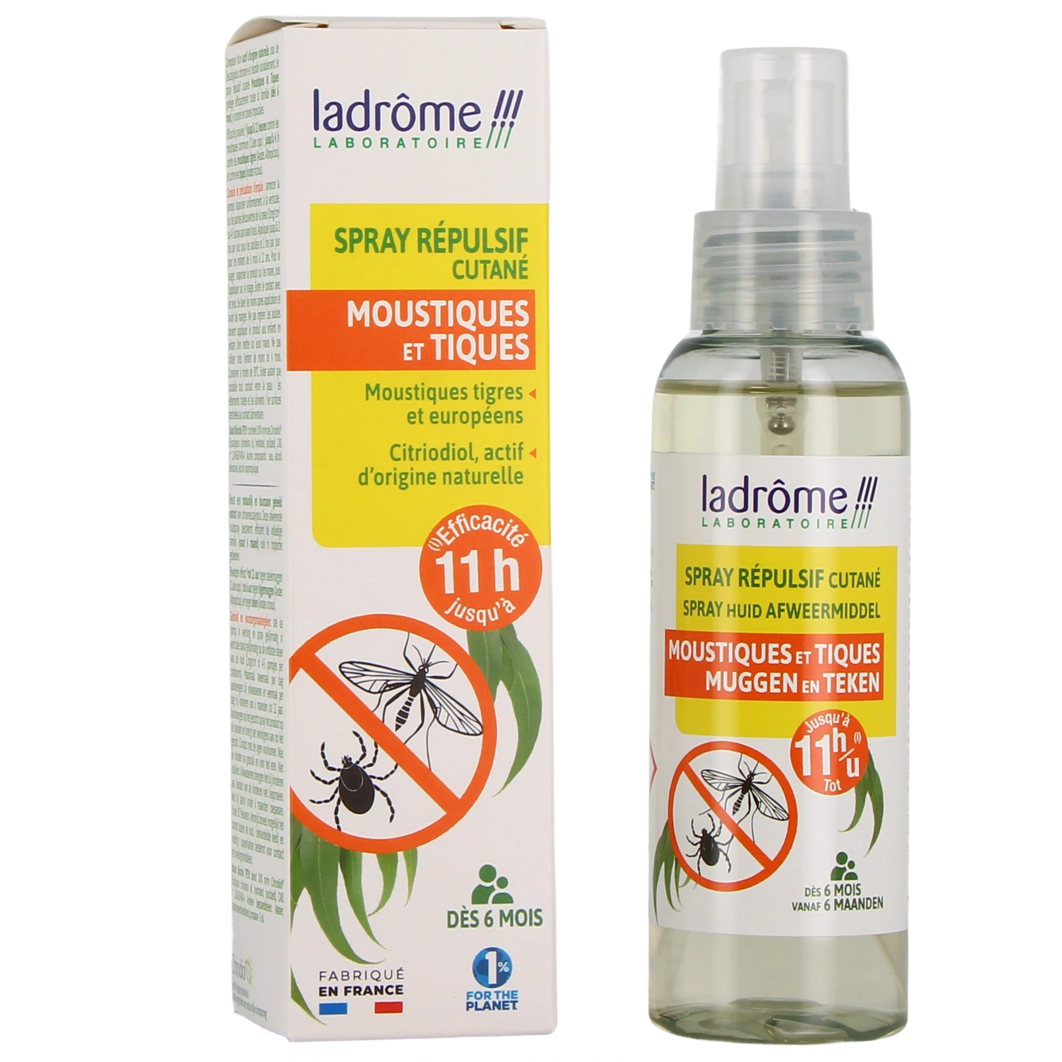 Le spray répulsif cutané anti-moustiques et tiques Ladrôme protègera toute la famille grâce à un actif d'origine naturelle à base d' Eucalyptus citronné contre les moustiques, les tiques et les midges (petits moucherons). Son format compact vous permettra de l'emporter partout avec vous pour pouvoir l'utiliser dès que nécessaire.