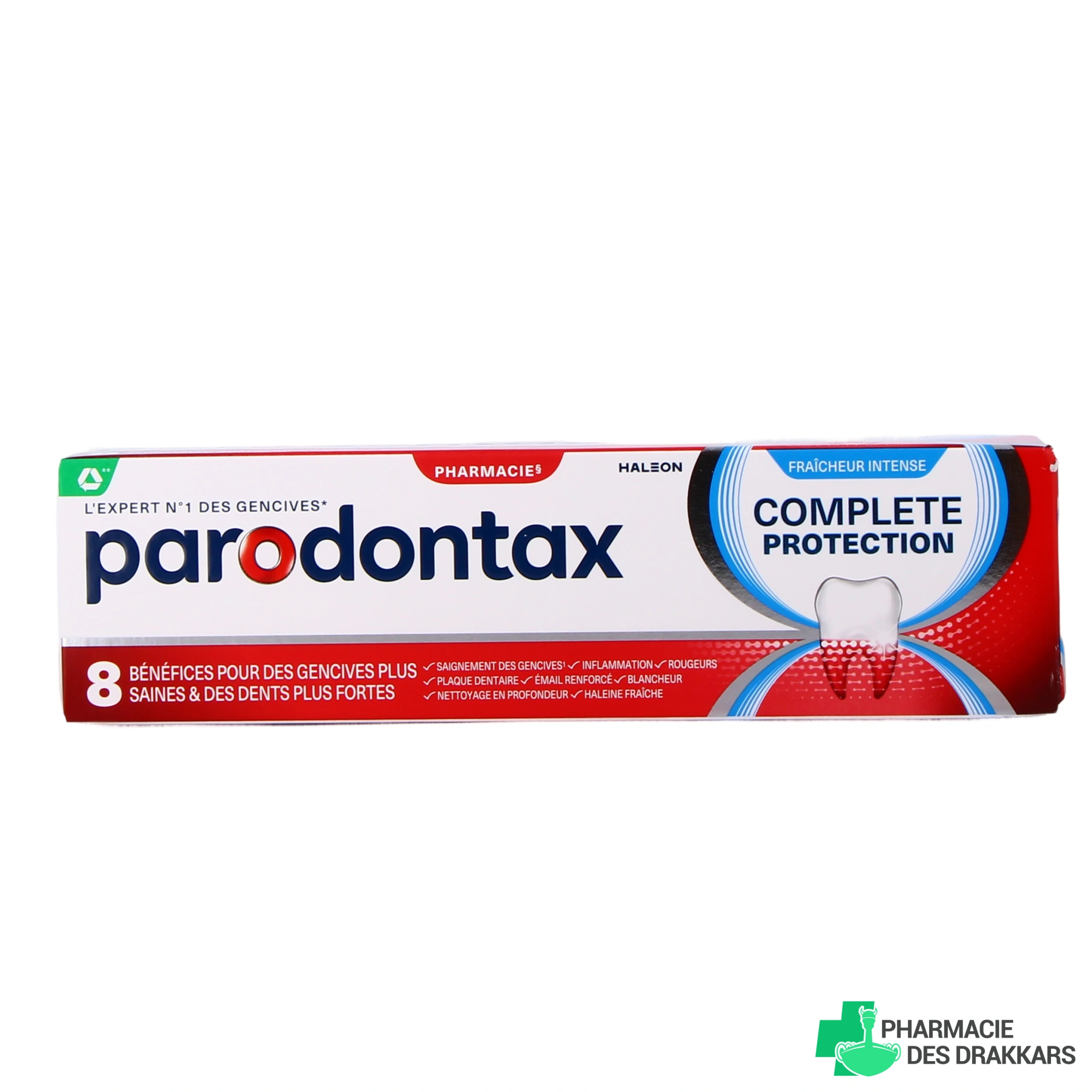 Pourvu de 8 bénéfices spécifiques, ce dentifrice aide au quotidien à réduire la plaque dentaire à l'origine de rougeurs et d'inflammations gingivales pour stopper les saignements des gencives. En effet, le dentifrice Parodontax Complete Protection nettoie les dents de manière optimale, il prévient les rougeurs, il limite l'inflammation des gencives, il renforce l'émail, blanchit les dents, lutte contre le saignement occasionnel des gencives, combat la plaque dentaire mais aussi la mauvaise haleine.
