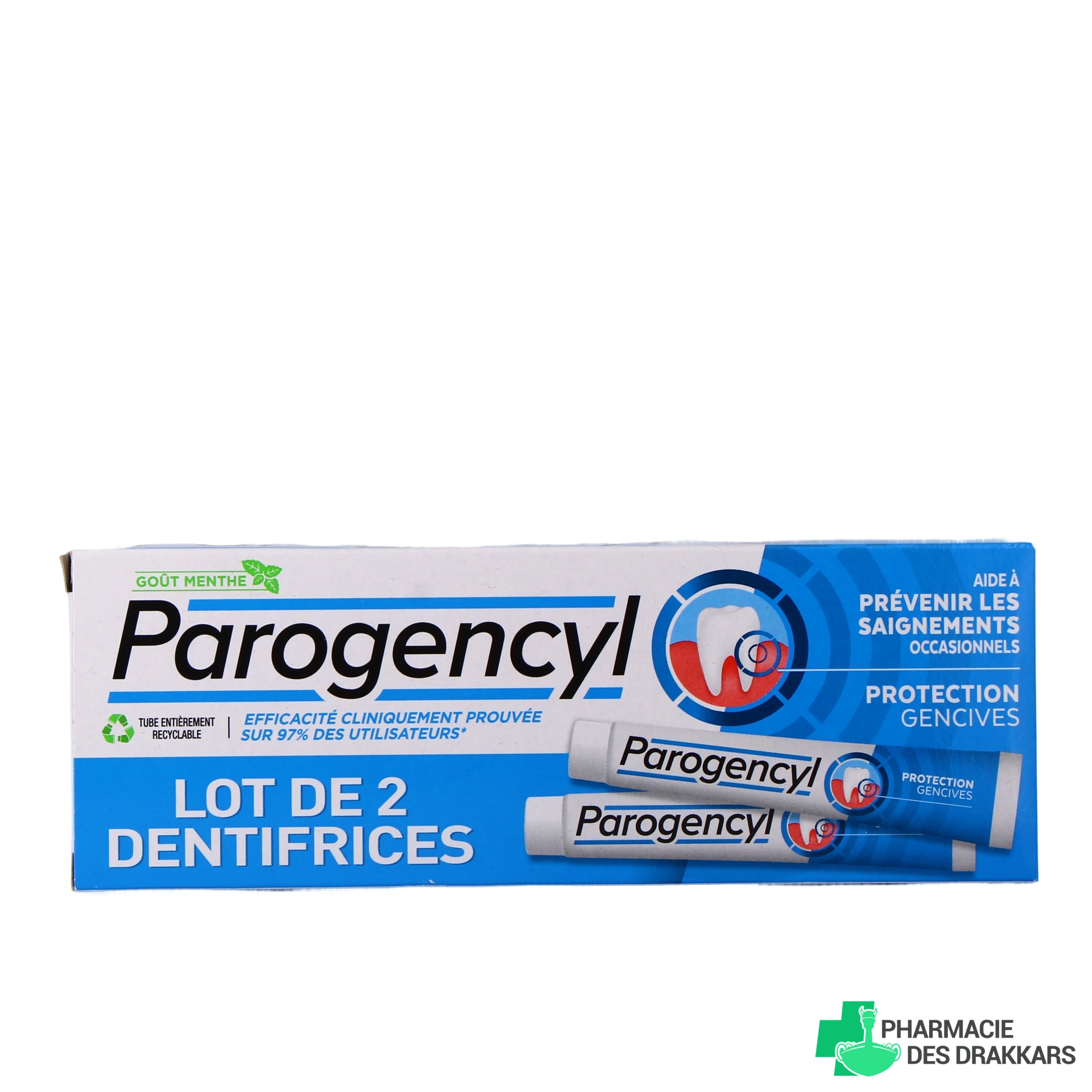 Présentation proposée par votre pharmacie en ligne pour le dentifrice Prévention Gencives Parogencyl : Tube de 75 ml & lot de 2 tubes de 75 ml.