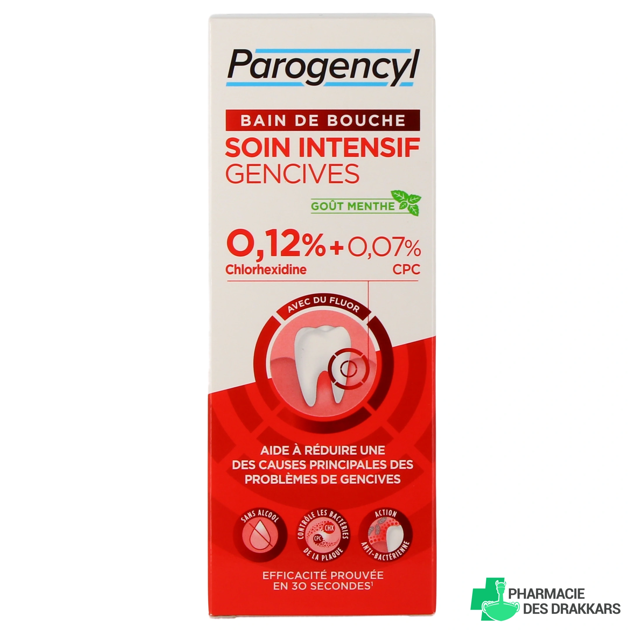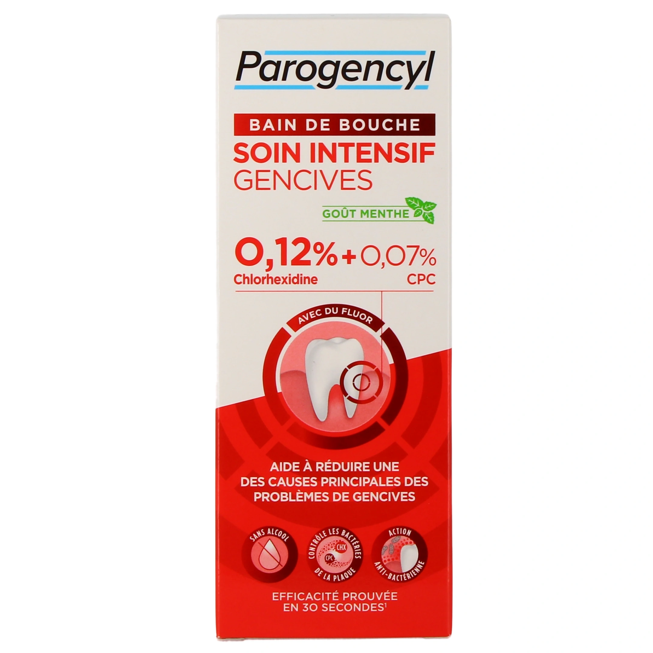 Si vous souffrez d'inflammations gingivales occasionnelles ou récurrentes, telles qu'un gonflement des gencives, des rougeurs ou encore des saignements, alors le bain de bouche Soin Intensif Gencives Parogencyl est fait pour vous. Sa formule contient notamment 0,12% de chlorhexidine, pour réduire l'accumulation de la plaque dentaire et des bactéries, ainsi que 0,07% de chlorure de Cetylpyridinium, un agent antibactérien contribuant au maintien de gencives plus saines.