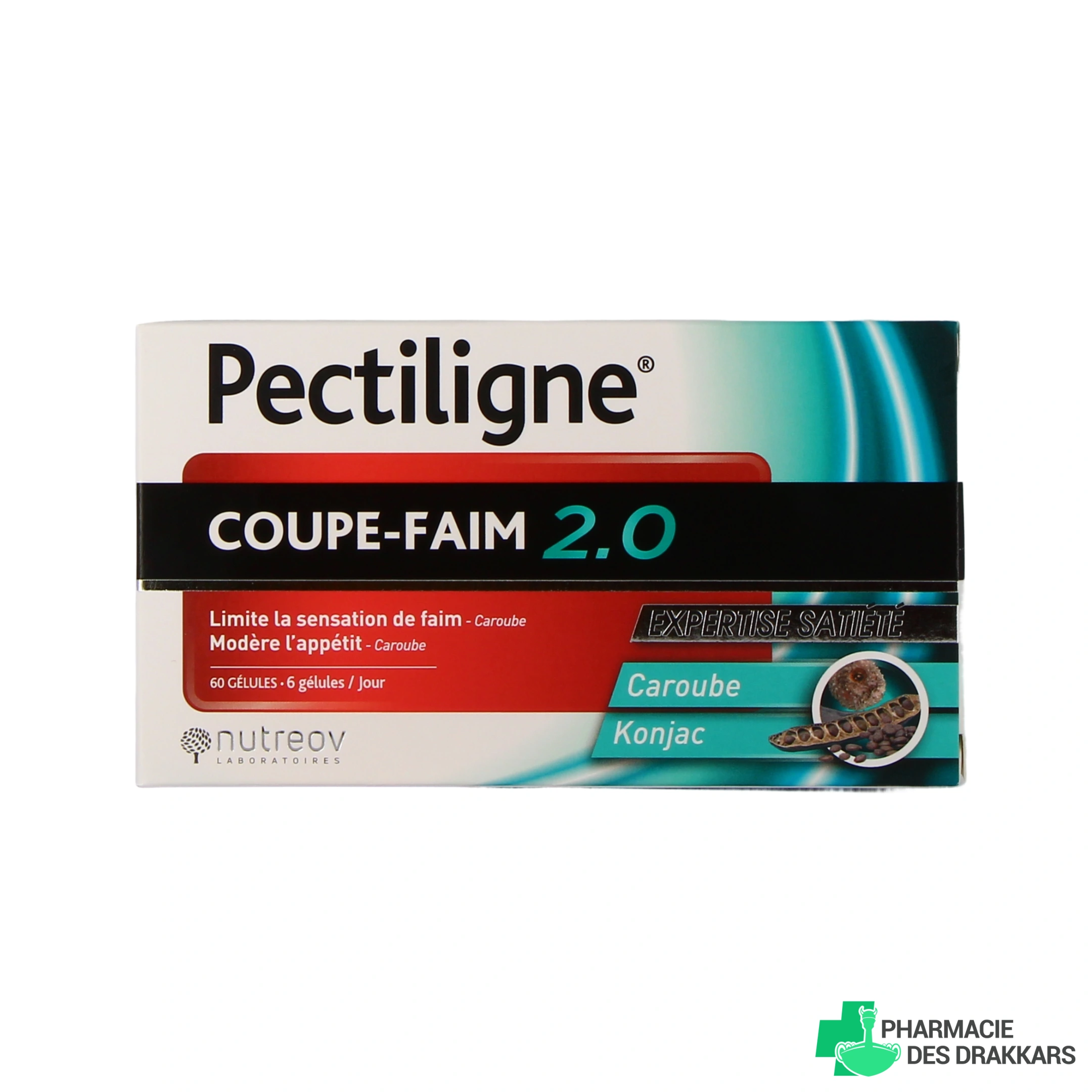Pectiligne Coupe-Faim est un complément alimentaire proposé par les Laboratoires Nutreov. Il exerce un effet modérateur d'appétit et contient des fibres naturelles, en particulier de la pectine de pomme.