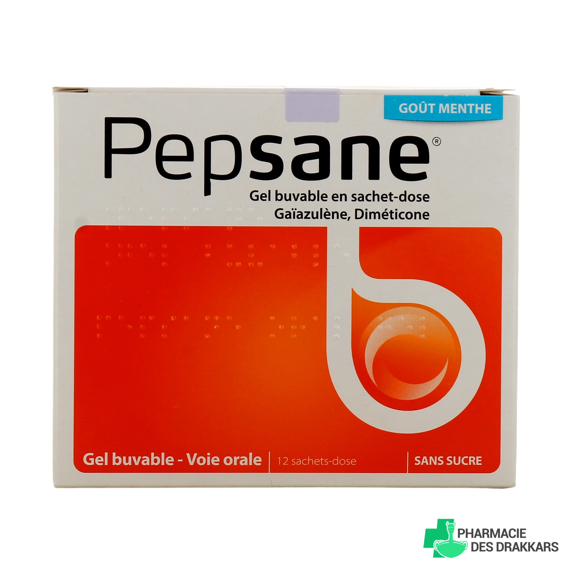 Conditionnements proposés sur votre pharmacie en ligne : Pepsane gel buvable aromatisé au goût mentholé en boîte de 12 ou 30 sachets-dose.