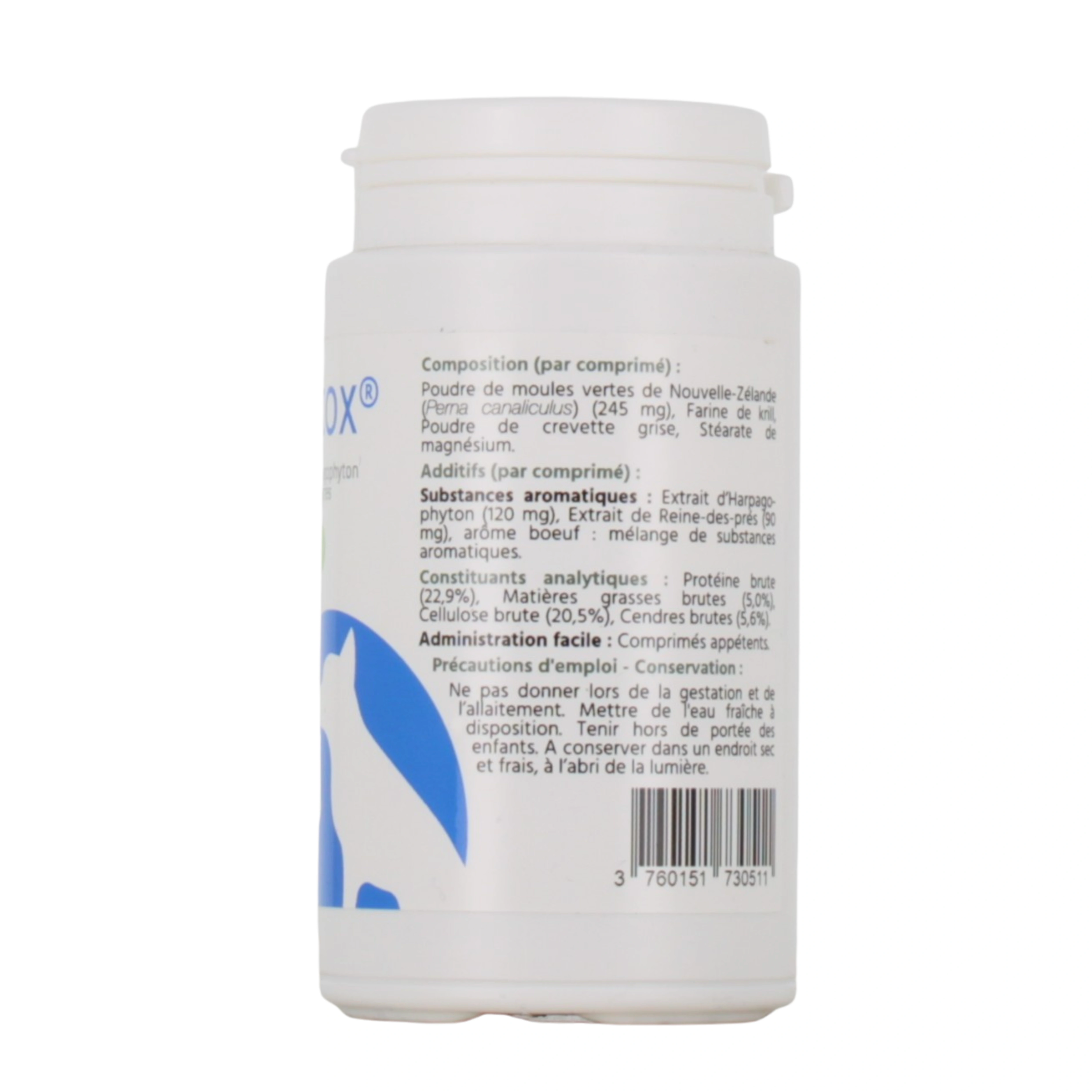 Pernacox est un aliment complémentaire à base d'extrait de mollusque, d'harpagophytum et de filipendula pour les articulations des chiens et des chats. Cet aliment complémentaire mis au point par le Laboratoire Green Vet se présente sous la forme de comprimés appétents à l'arôme viande.