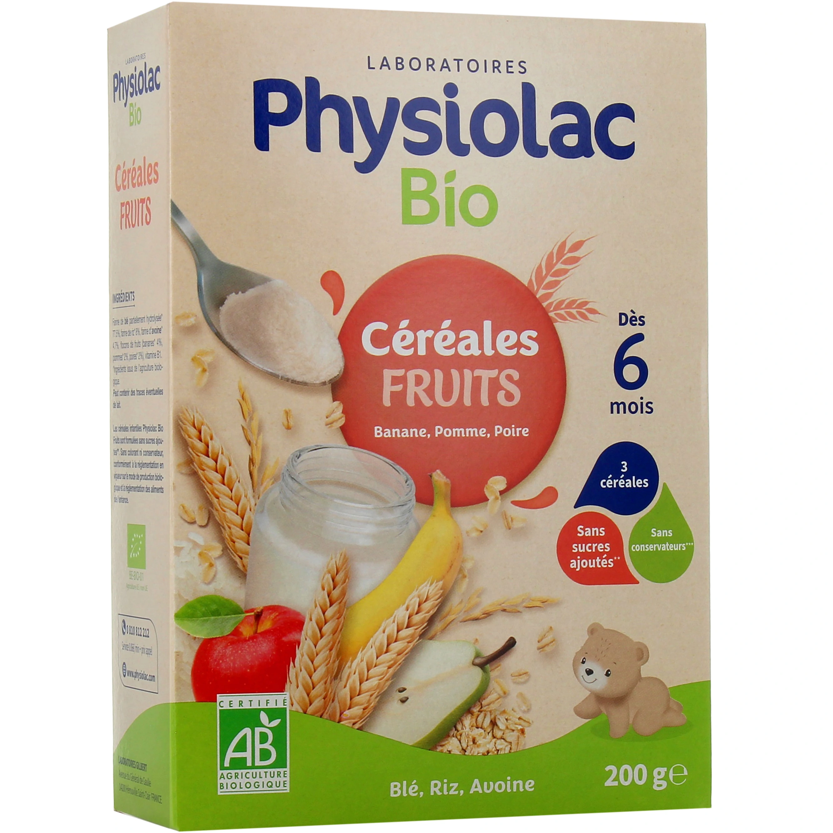 Pour les enfants à partir de 6 mois, Physiolac propose les céréales bio goût fruits. Ces céréales infantiles participent à la diversification alimentaire, une étape importante du développement de bébé.