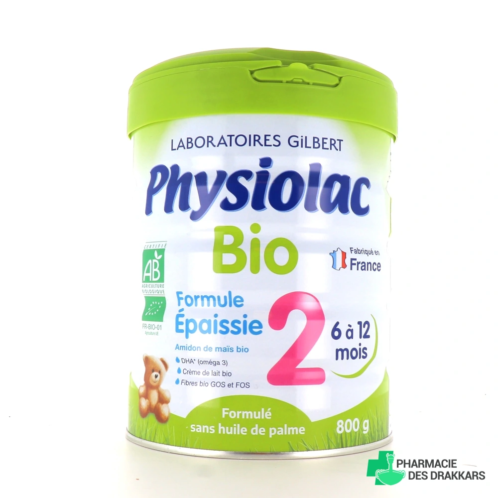 Le lait 2ème âge Physiolac Bio Formule épaissie st un lait infantile en poudre fabriqué en France, et destiné aux bébés âgés de 6 à 12 mois.