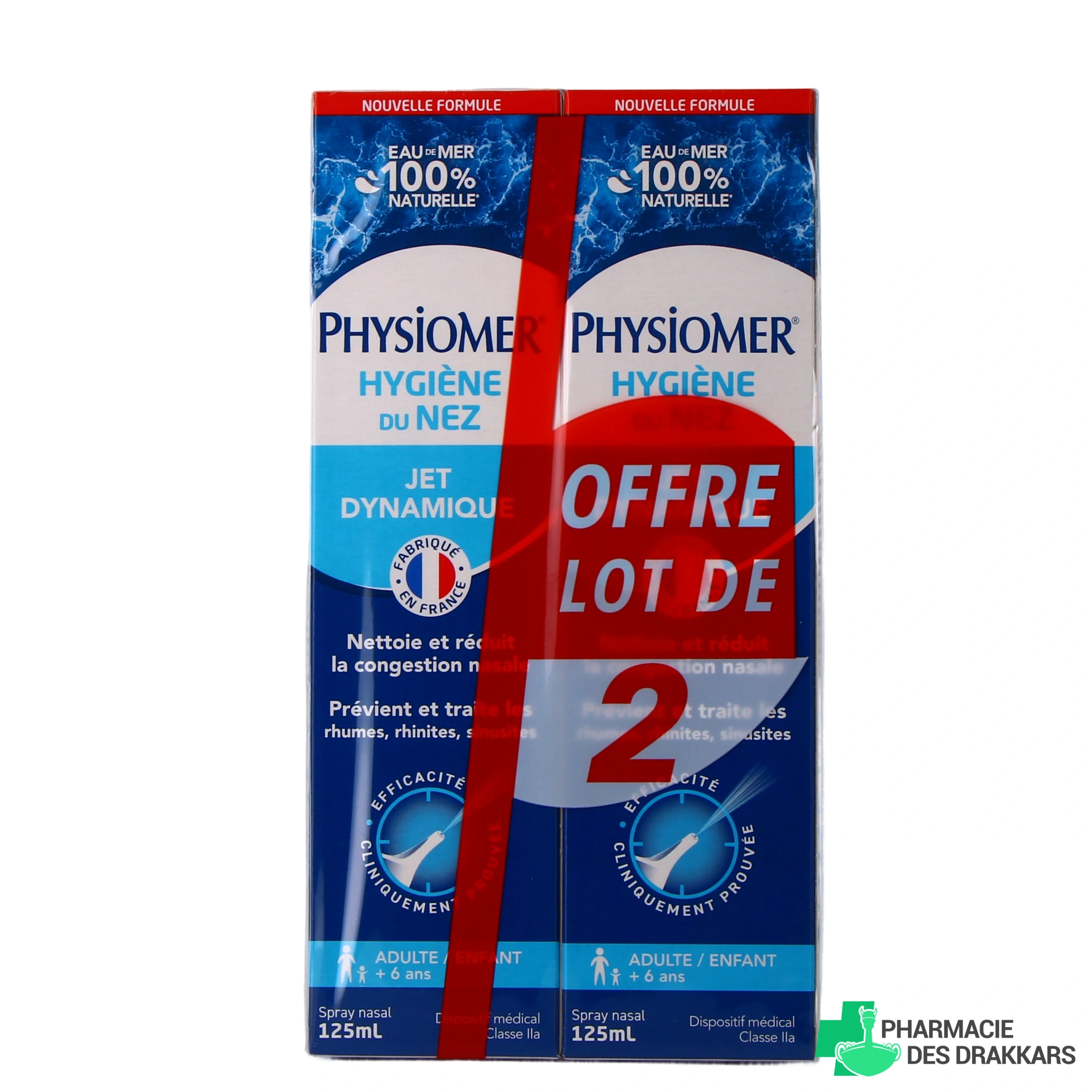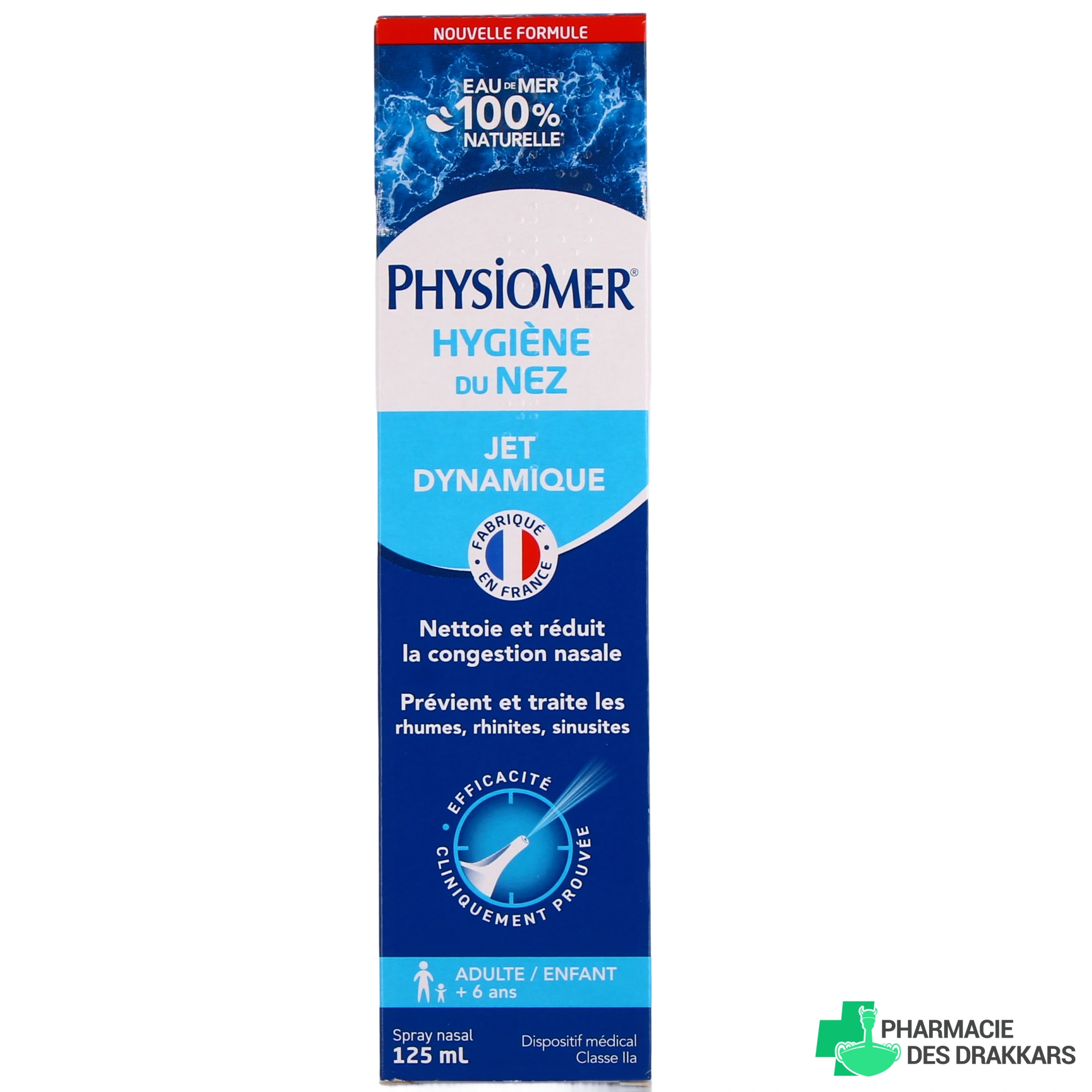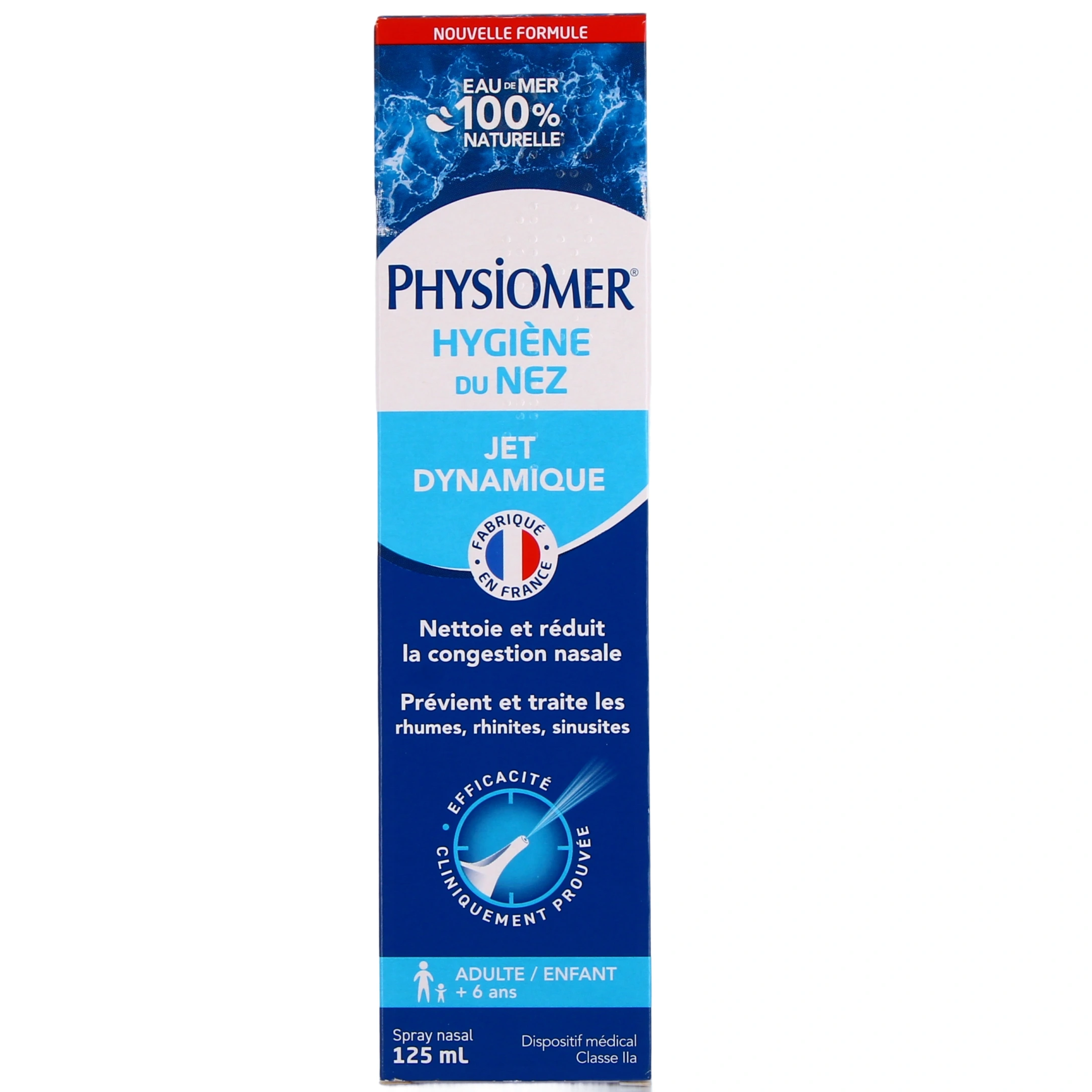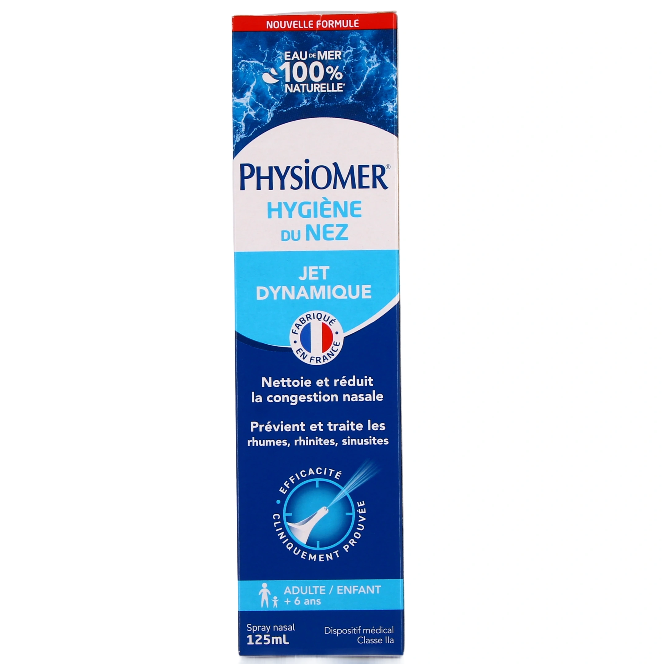 Physiomer Jet Dynamique est un spray pour le nez qui lave, hydrate et désencombre les fosses nasales. Comme son nom l'indique, ce spray pour l'hygiène du nez est doté d'un jet puissant, qui se révèle d'autant plus efficace pour évacuer les sécrétions en excès en un seul geste.