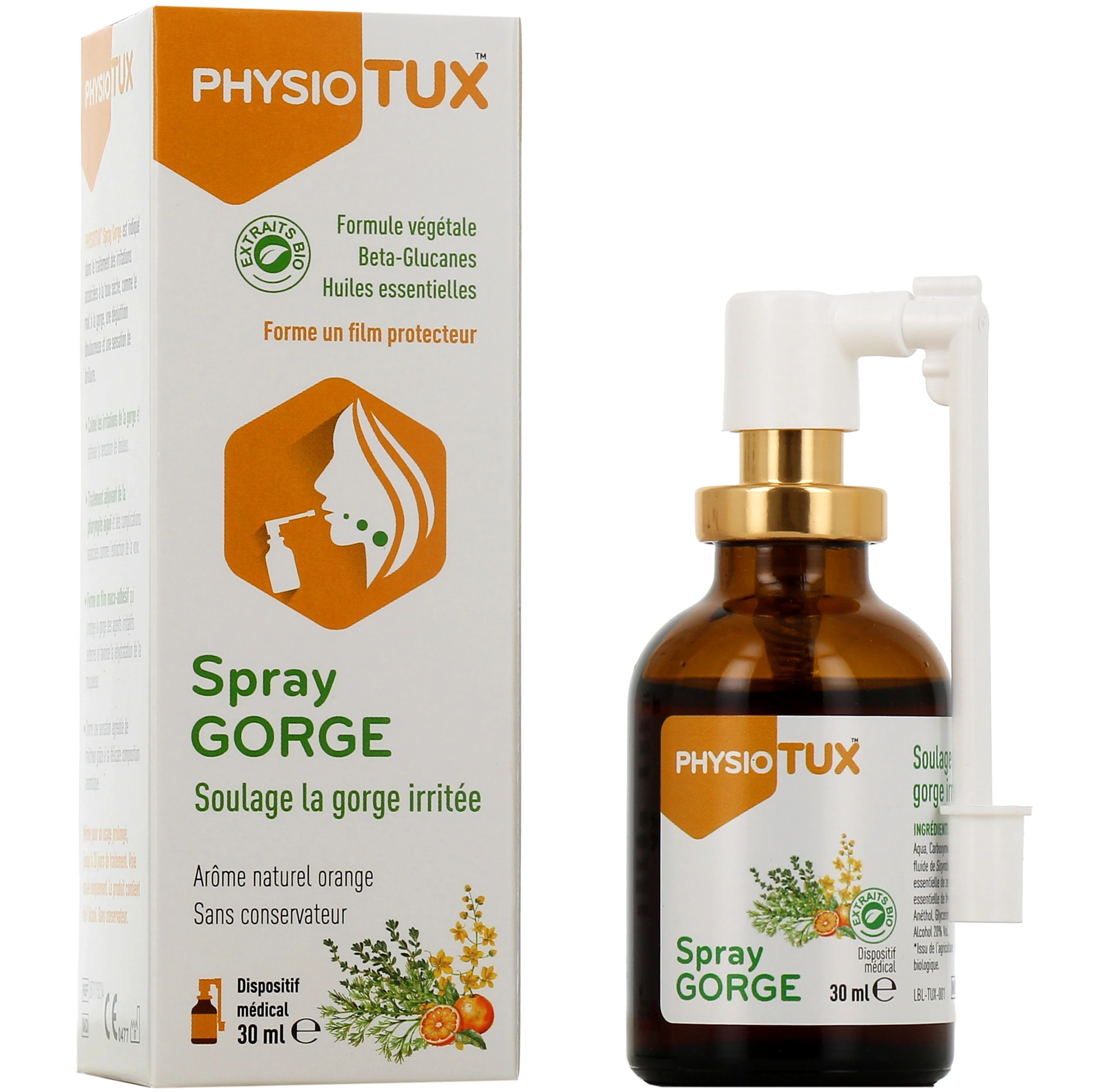 Le spray gorge Physiotux est spécialement conçu pour apaiser les irritations de la gorge et traiter les inconforts liés aux pharyngites aiguës. Ce dispositif médical agit en formant un film protecteur muco-adhésif, qui réduit la déshydratation des muqueuses et crée une barrière contre les agents irritants extérieurs.