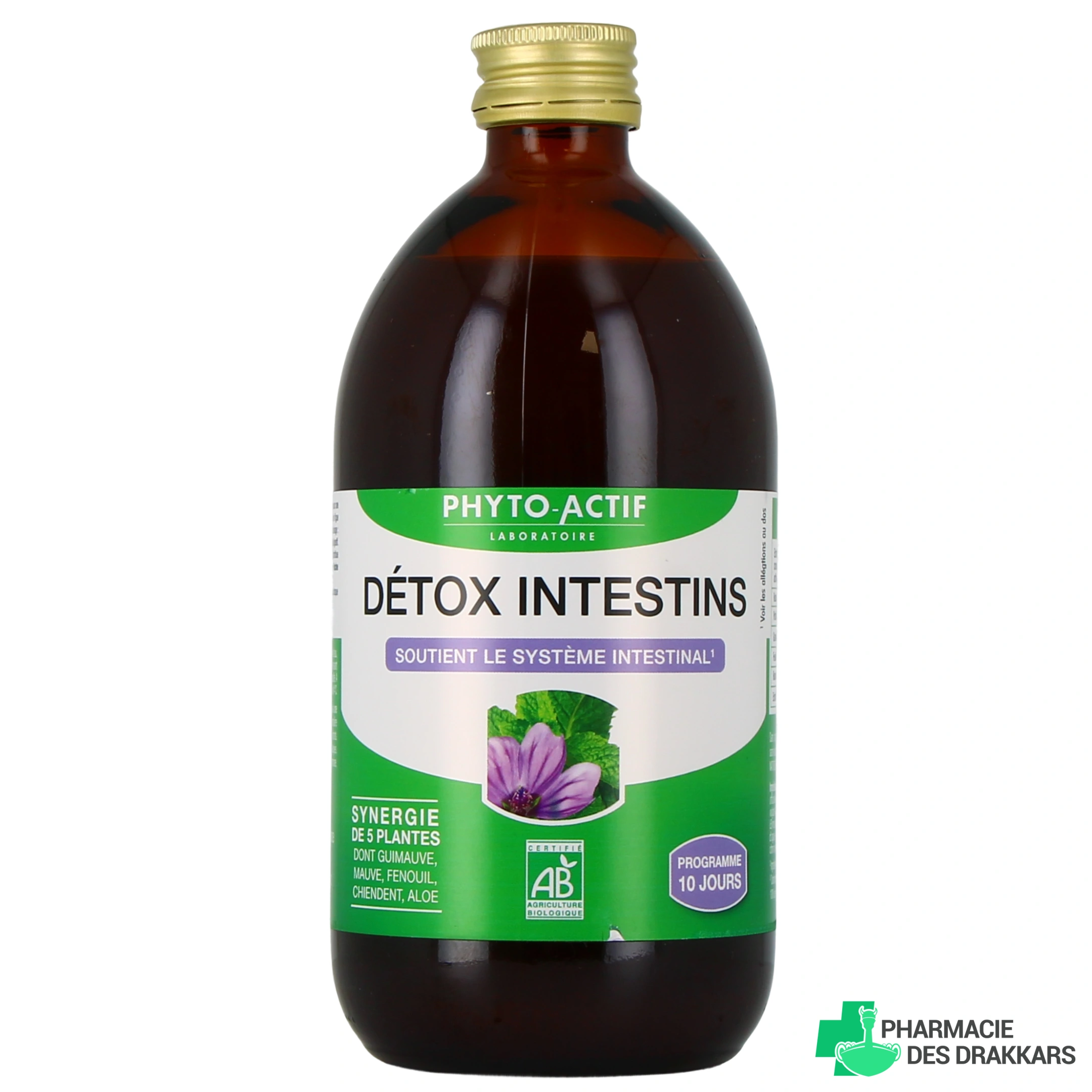 Présentation disponible pour Biopur Détox Intestins Phyto-Actif sur notre pharmacie en ligne : Bouteille en verre de 500 ml avec bouchon doseur