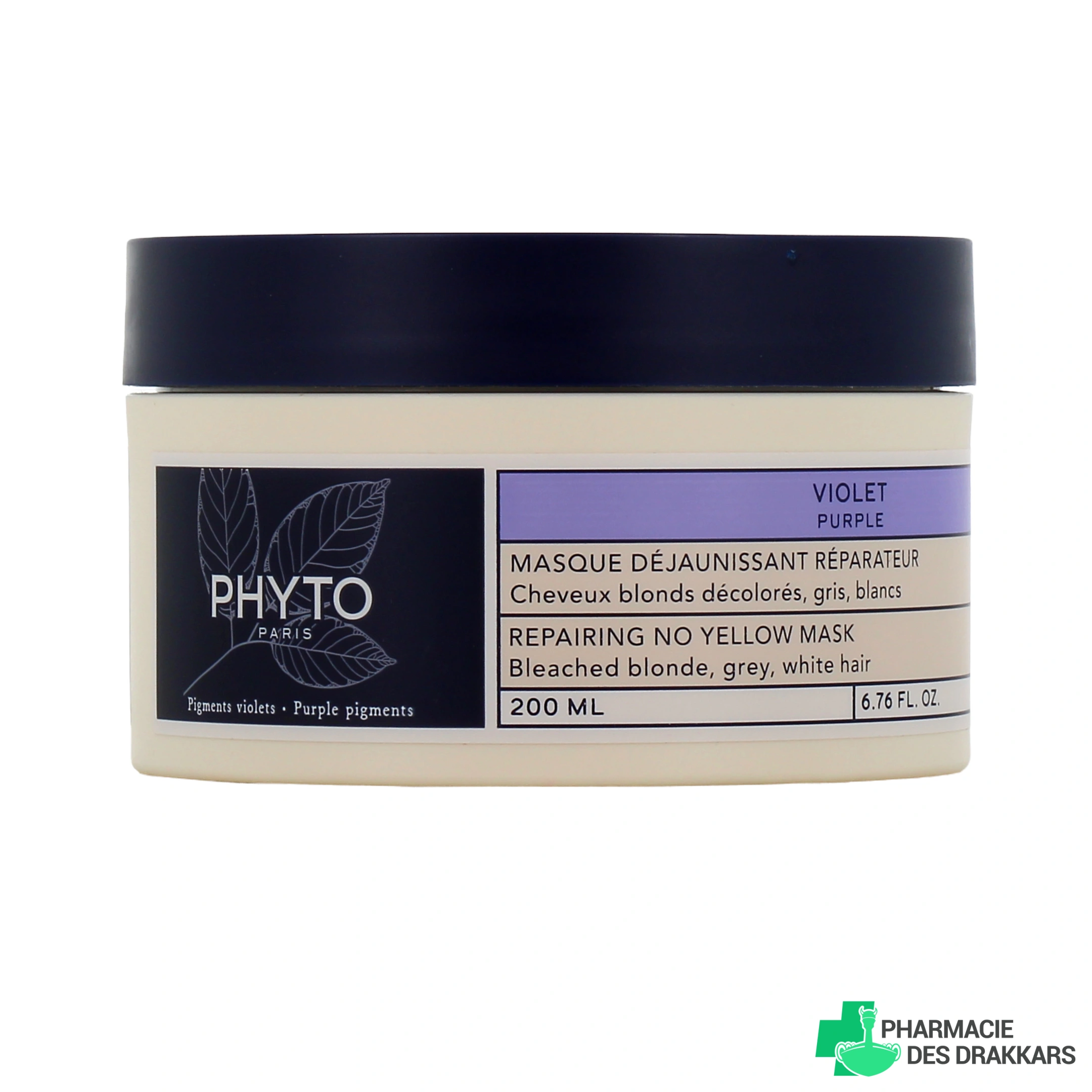 Présentation disponible pour le masque déjaunissant réparateur Phyto Violet sur notre pharmacie en ligne : Pot de 200 ml