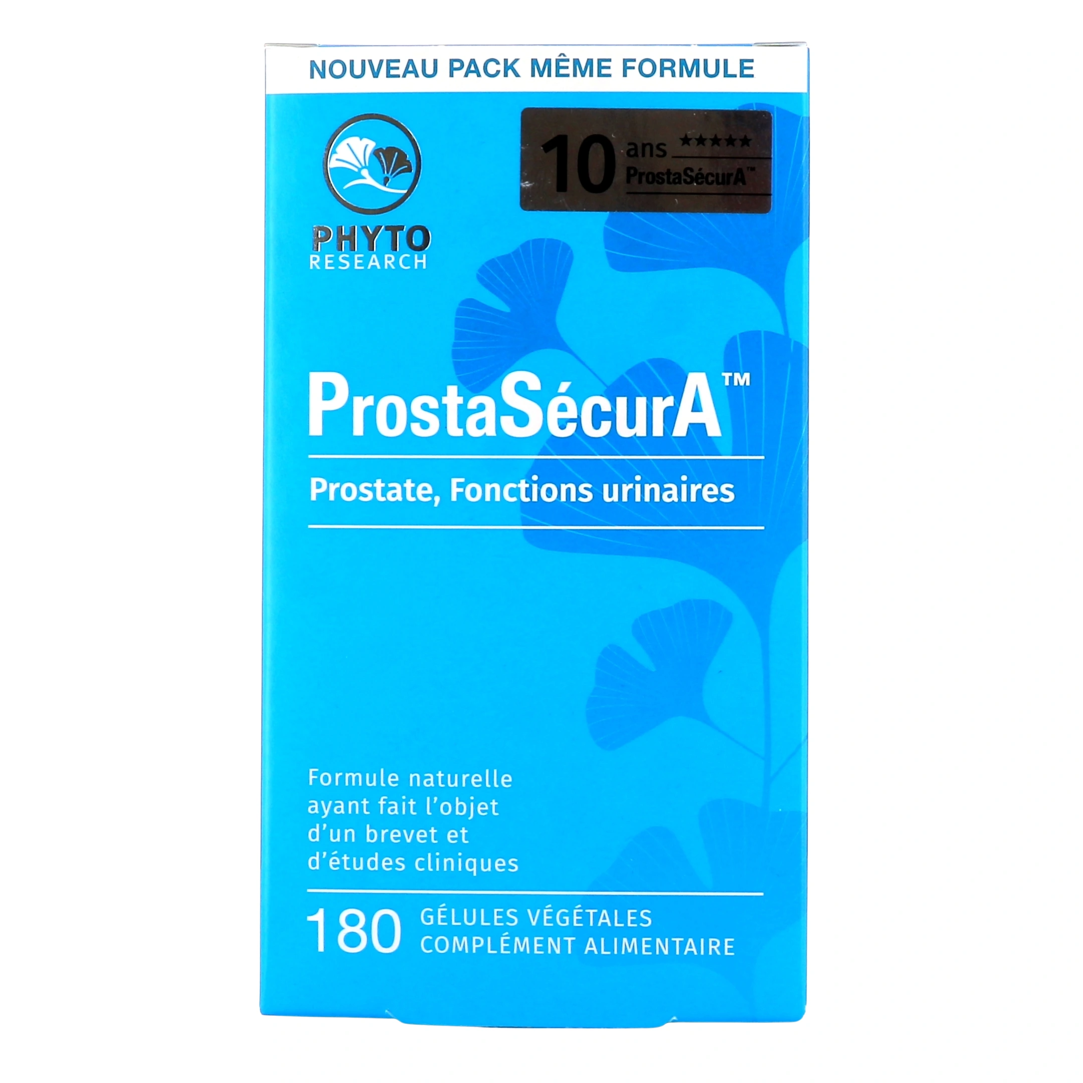 Conditionnement proposé par la Pharmacie des Drakkars pour le complément alimentaire ProstaSécurA Phytoresearch : Boîte de 60 ou 180 gélules