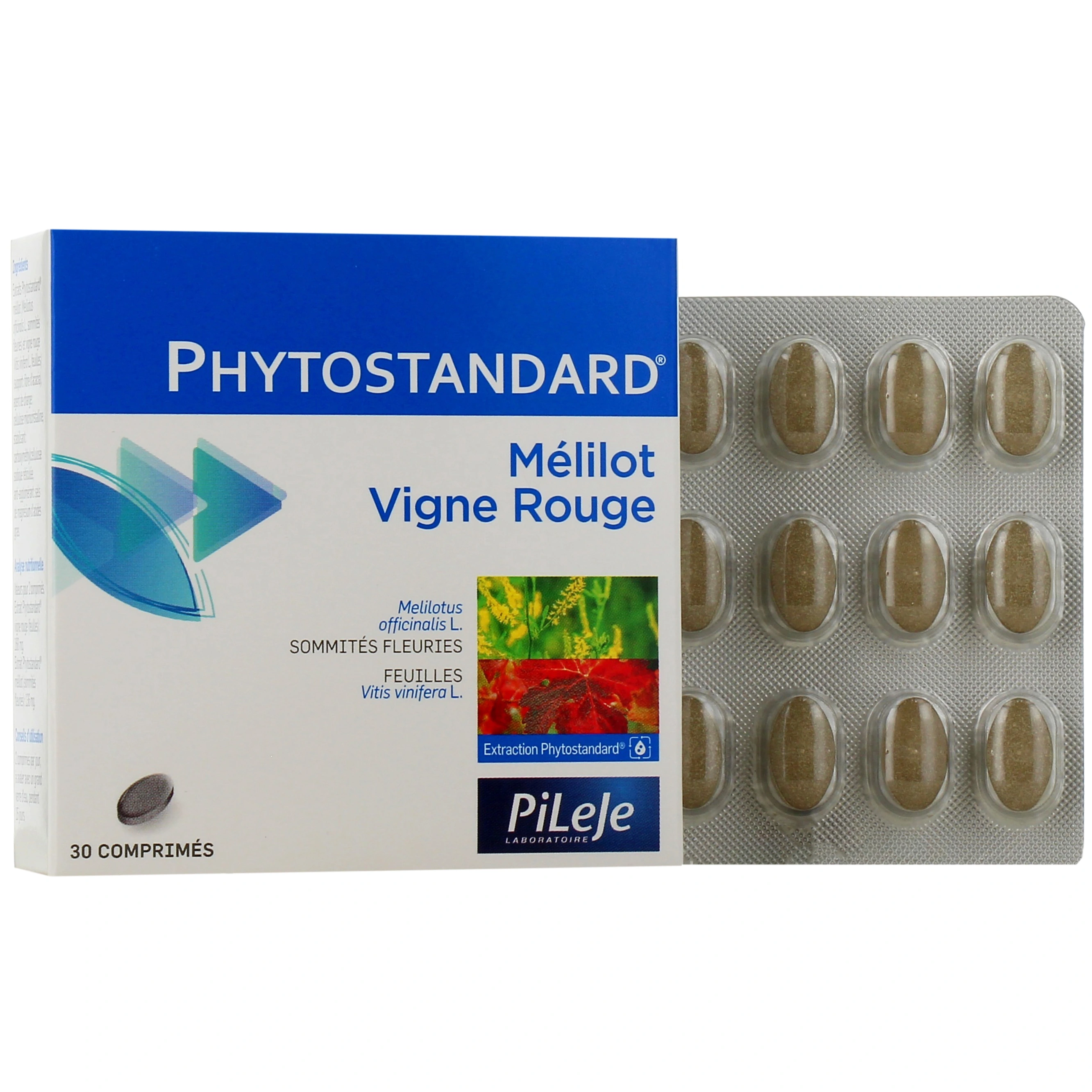 Conditionnement proposé sur notre pharmacie en ligne pour Phytostandard de Mélilot et de Vigne Rouge : Boîte de 30 comprimés.