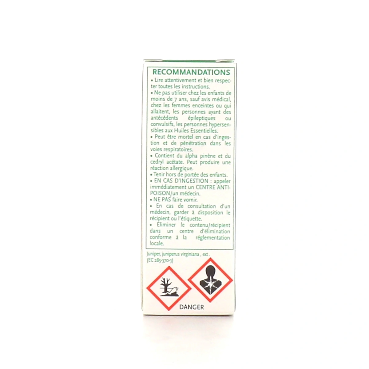 Phytosun Aroms Huile Essentielle Cèdre de Virginie doit être conservée à l'abri de la lumière. Éliminer le contenu ou le récipient dans un centre d’élimination conforme à la réglementation locale. Pour le milieu aquatique : toxicité aiguë, catégorie 1 ; toxicité chronique, catégorie 1. Dangereux. Respecter les précautions d’emploi. Lire l’étiquetage avant toute utilisation. Demandez conseil à votre pharmacien.Questions fréquentes sur Phytosun Aroms Huile Essentielle Cèdre de Virginie