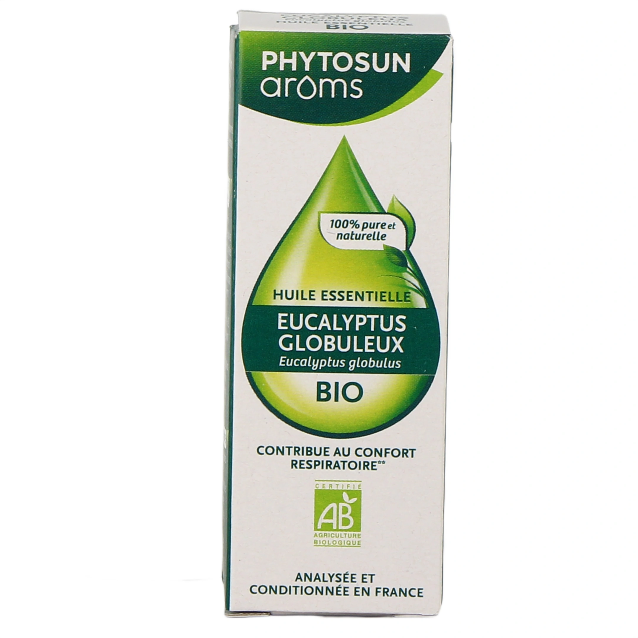 L'Huile Essentielle d'Eucalyptus globulus BIO Phytosun Aroms est un complément alimentaire issu de la distillation des feuilles d'Eucalyptus globulus.