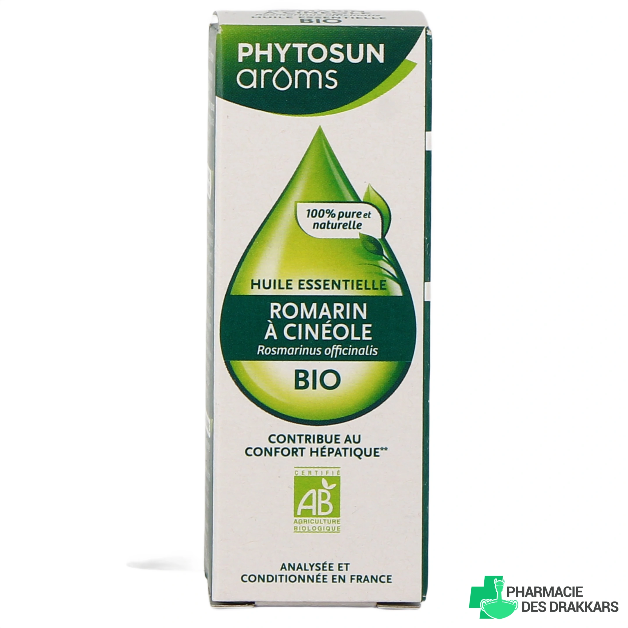 Vous pourrez retrouver l'huile essentielle de romarin à cinéole Bio Phytosun Aroms dans les présentations suivantes chez Pharmacie des Drakkars : flacon compte-gouttes de 10 ml.