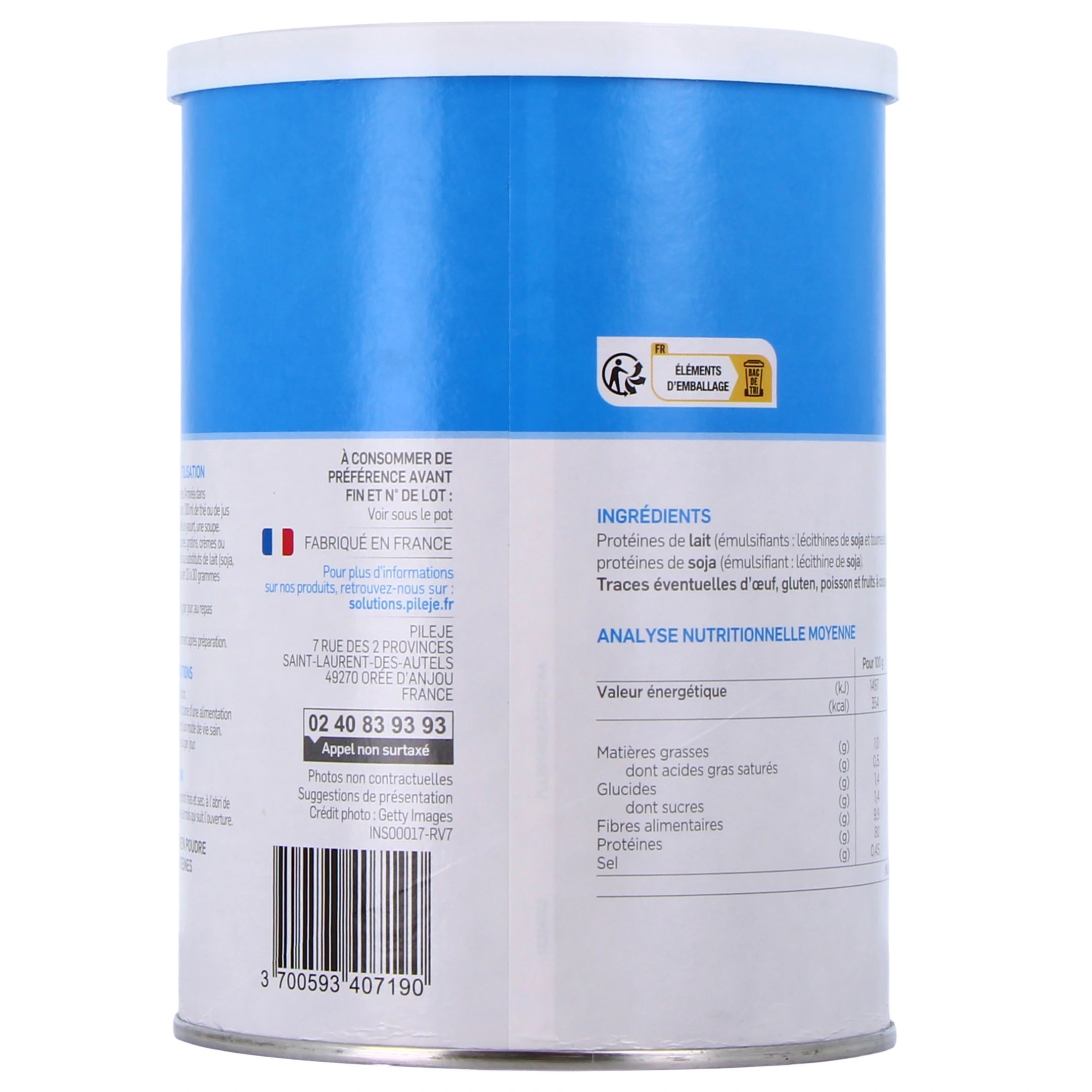 Présentation disponible pour Pileje Aminea sur notre pharmacie en ligne : Pot de 300 g de poudre saveur neutre (soit 30 portions de 10 g)
