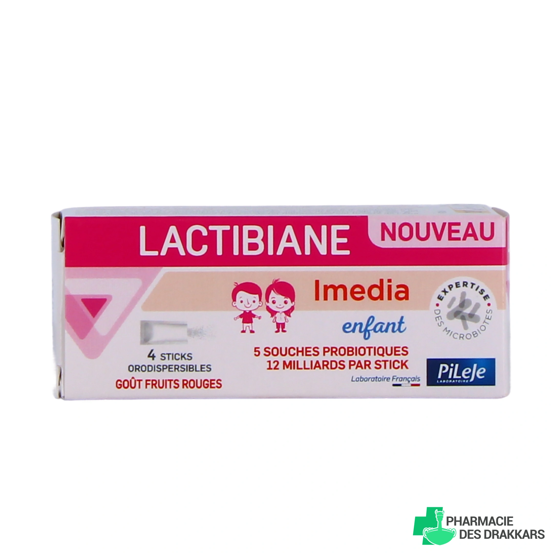 Lactibiane Imedia Enfant se compose quant à lui des quatre souches précédemment citées ainsi que la souche probiotique Lacticaseibacillus rhamnosus GG LA801.