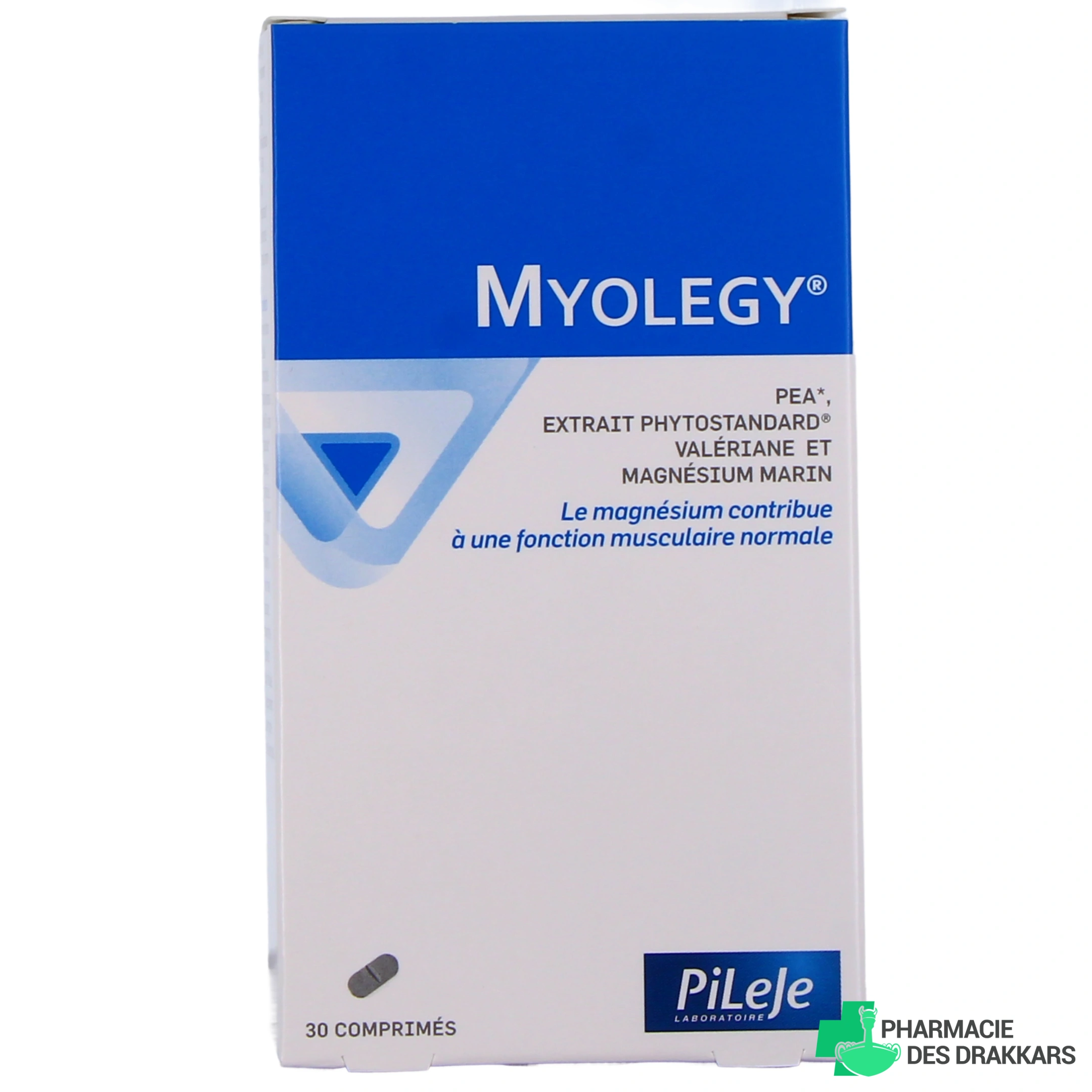 Myolegy est un complément alimentaire du Laboratoire Pileje dont la formulation regroupe du PEA, de l'extrait de Valériane et du magnésium marin, ce dernier jouant un rôle dans une fonction musculaire normale.