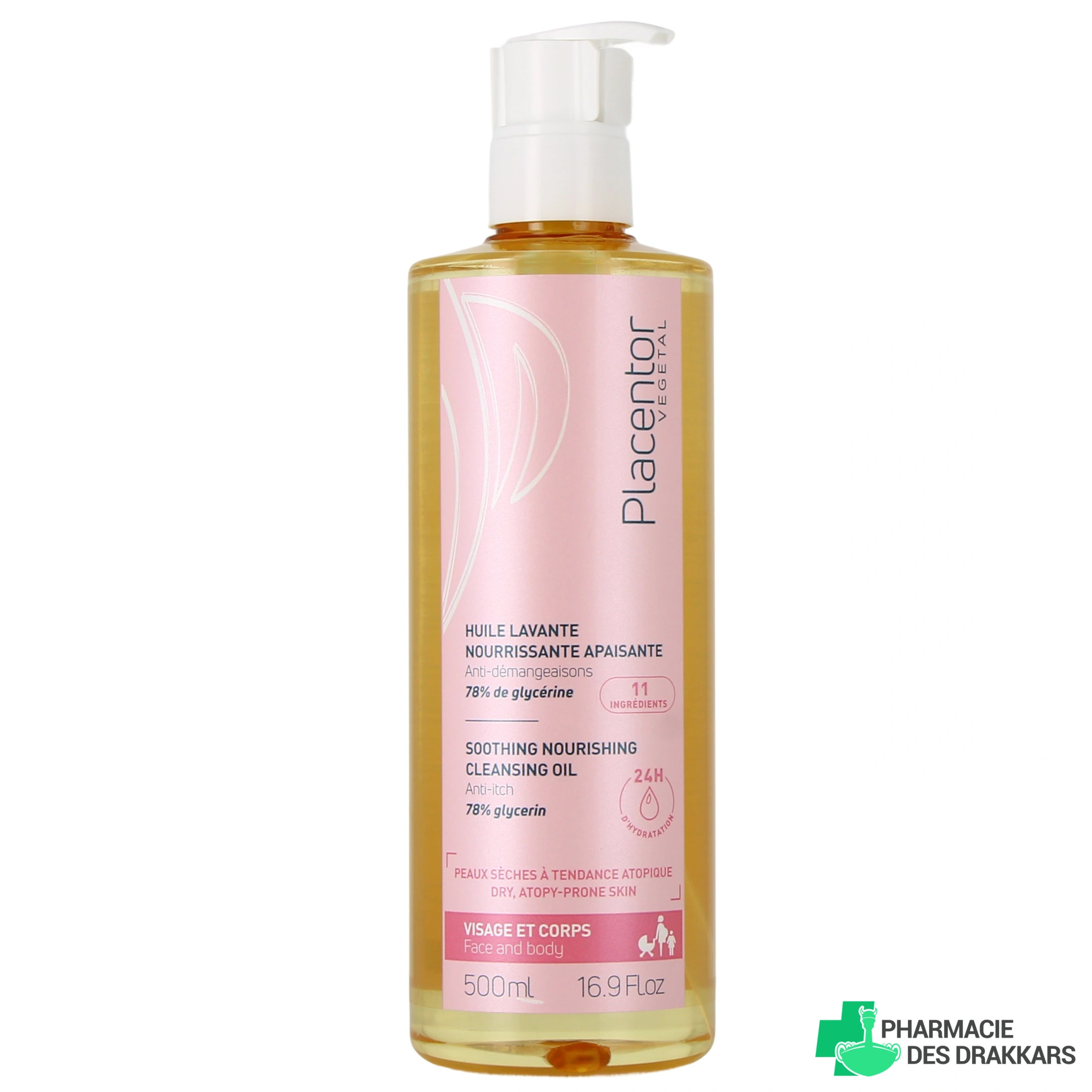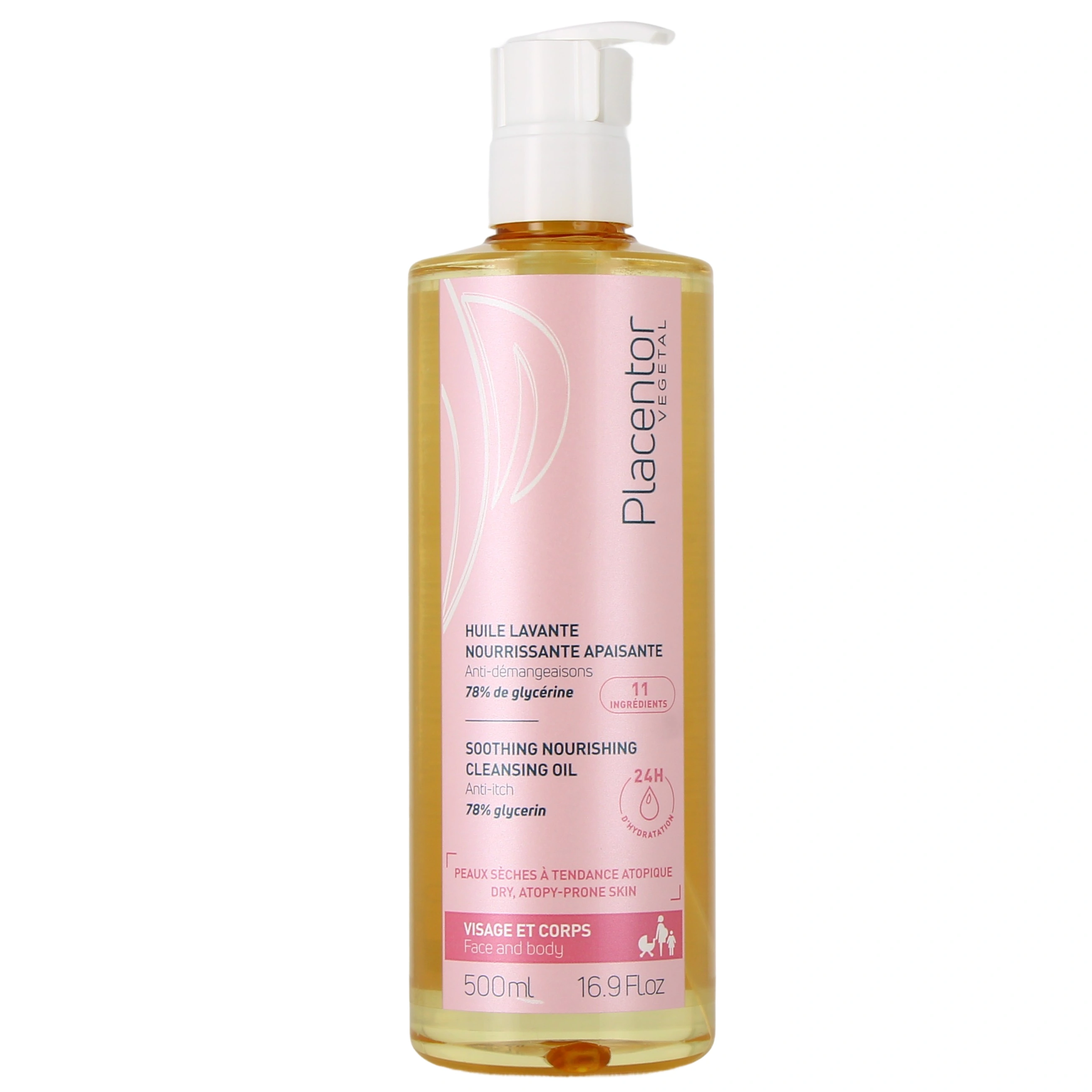 L'huile lavante nourrissante apaisante Placentor nettoie, nourrit et apaise les peaux sèches, sensibles ou à tendance atopique. Concentrée à 78% en glycérine d'origine végétale, elle procure 24 heures d'hydratation et calme immédiatement les tiraillements et démangeaisons. Sa formule minimaliste composée de 98% d'ingrédients d'origine naturelle garantit une haute tolérance et le respect des peaux les plus fragiles. Adaptée dès la naissance, elle s'utilise sur le visage, le corps et la zone intime.