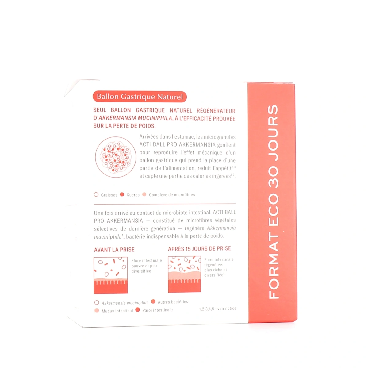 Pomeol Acti Ball est le seul ballon gastrique naturel régénérateur d'Akkermansia muciniphila, offrant une efficacité prouvée sur la perte de poids. Il est formé avec des micro-granules de microfibres végétales, pour offrir de multiples actions pour aider les personnes en surpoids à perdre du poids :