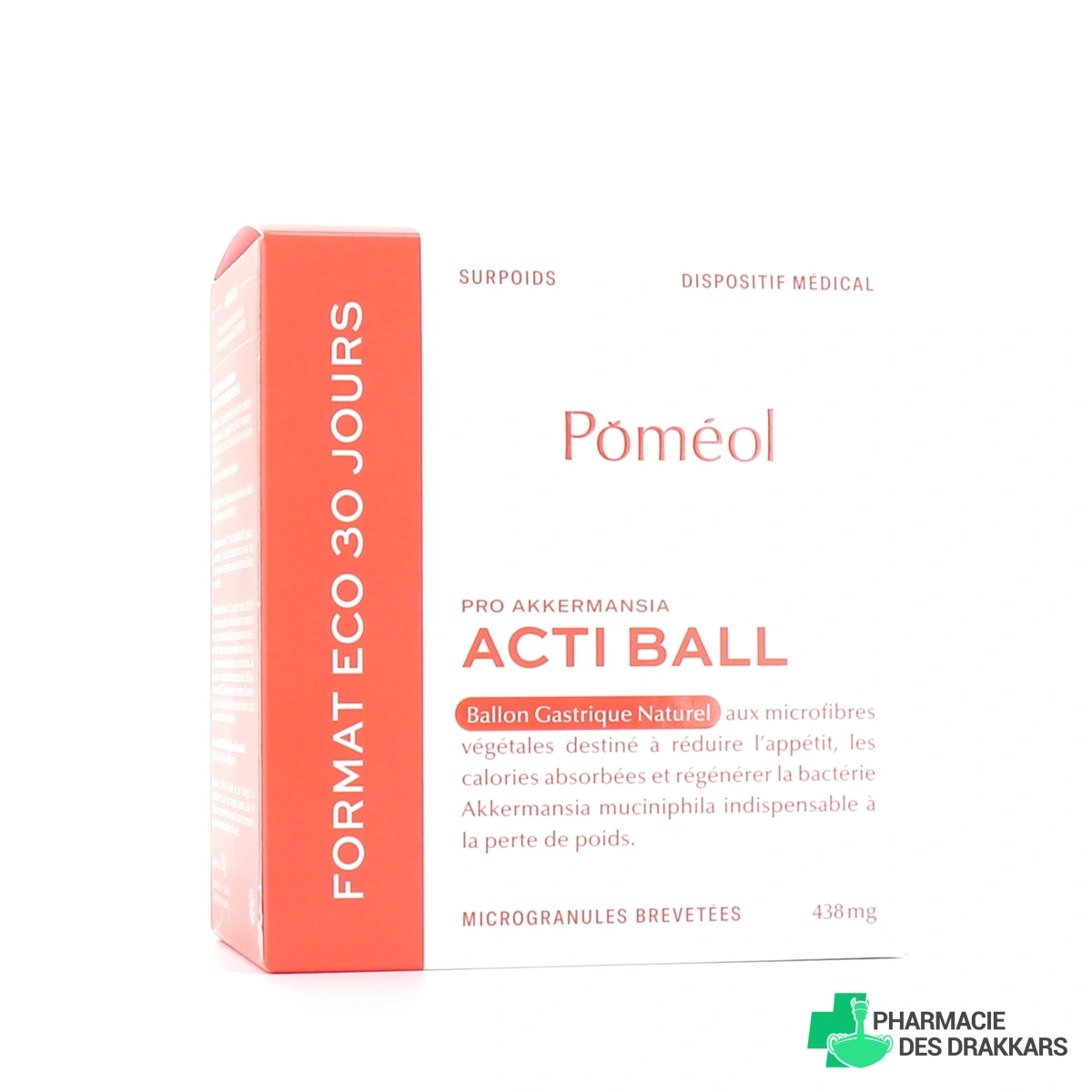 Pomeol Acti Ball Pro Akkermansia est un dispositif médical à base d'un complexe de fibres 100% végétales, qui se présente sous la forme d'un ballon gastrique naturel destiné aux personnes en surpoids qui souhaitent perdre du poids.