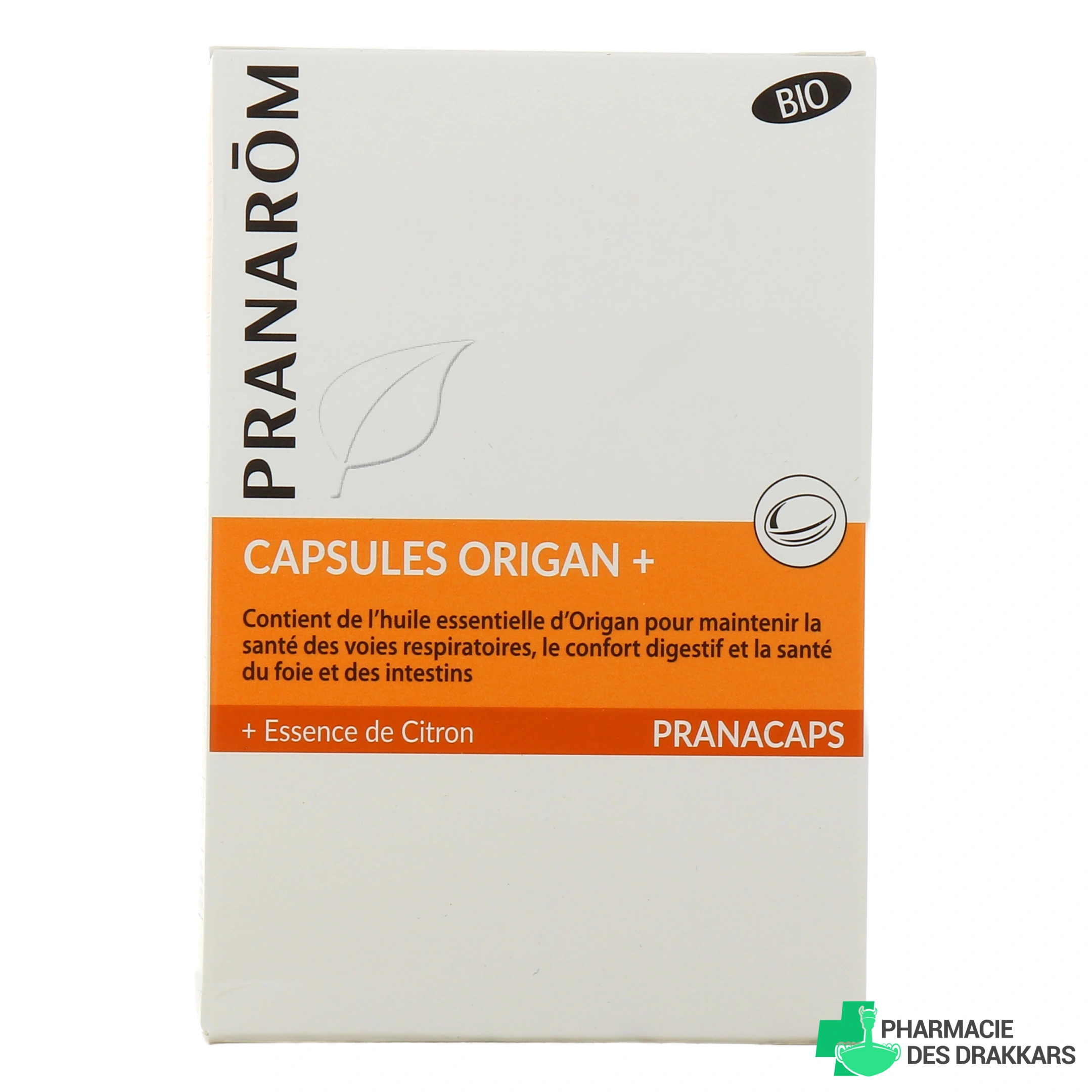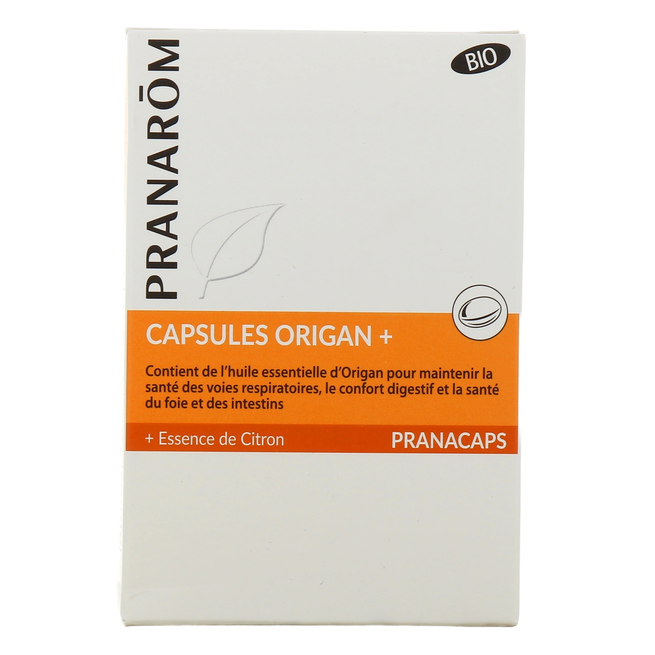 Les capsules Origan + bio, mises au point par Pranarom, sont une association d'huile essentielle, d'essence de citron et d'huile végétale de colza qui participe au maintien de la santé des voies respiratoires et au confort digestif.