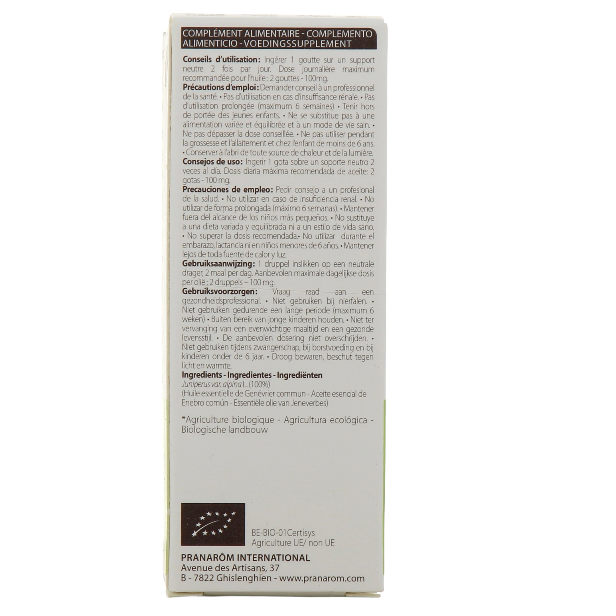 L'huile essentielle Genévrier commun Pranarom est une huile essentielle 100% pure et naturelle obtenue par distillation des rameaux et baies de la plantes.