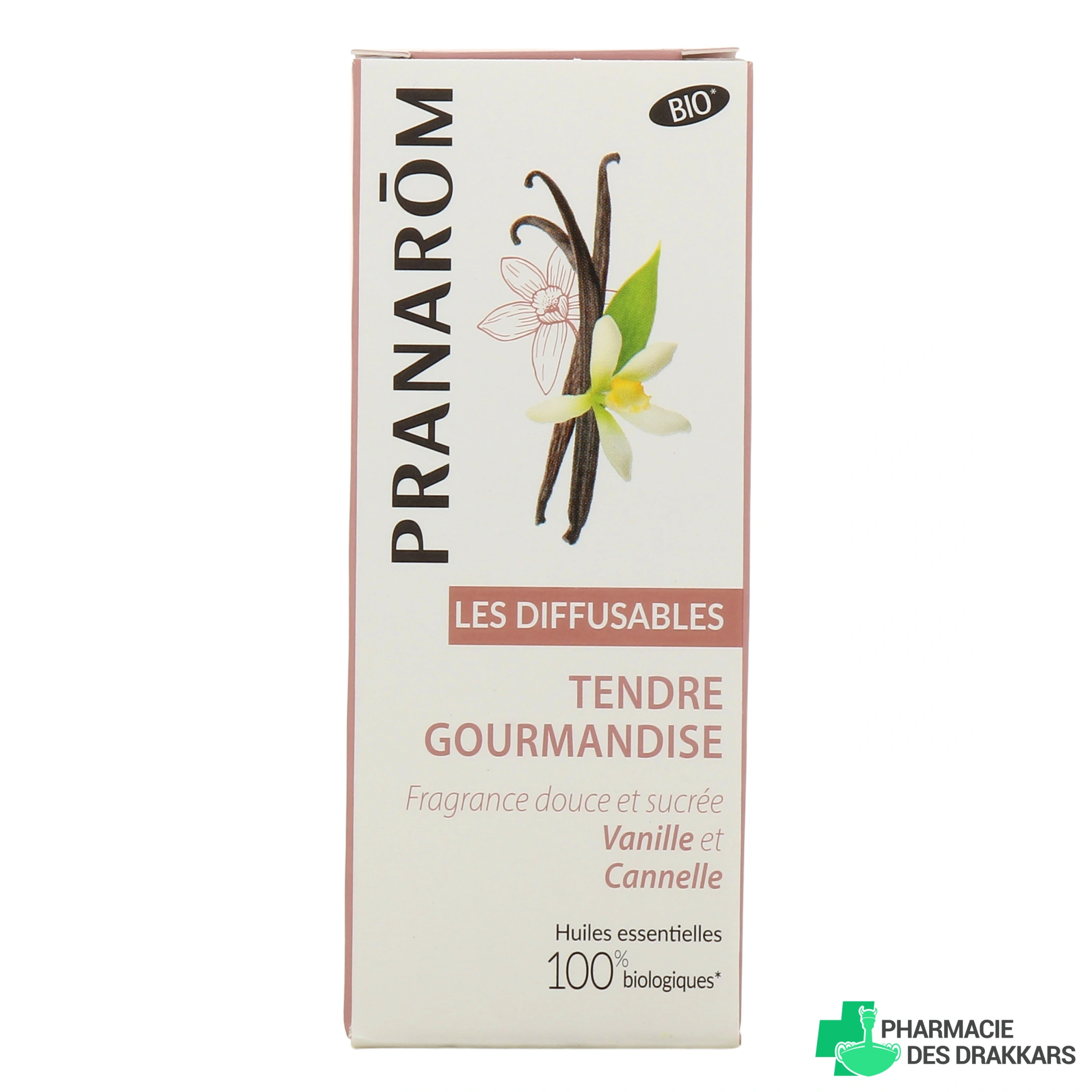 Les Diffusables Tendre Gourmandise est un mélange d'huiles essentielles pour diffusion conçu par la marque Pranarom. Il est composé d'huiles essentielles 100 % biologiques formant une fragrance douce, gourmande et sucrée.