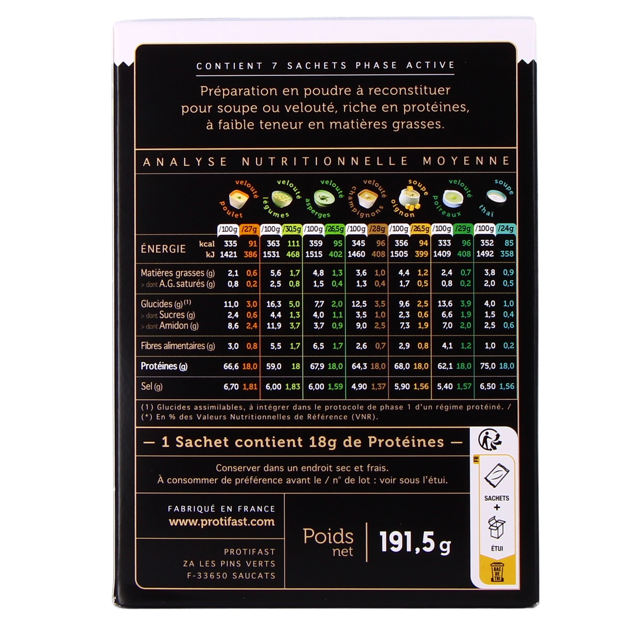 soja); légumes déshydratés (13.7%) (pomme de terre, carottes, oignon, asperges, poivrons rouges,