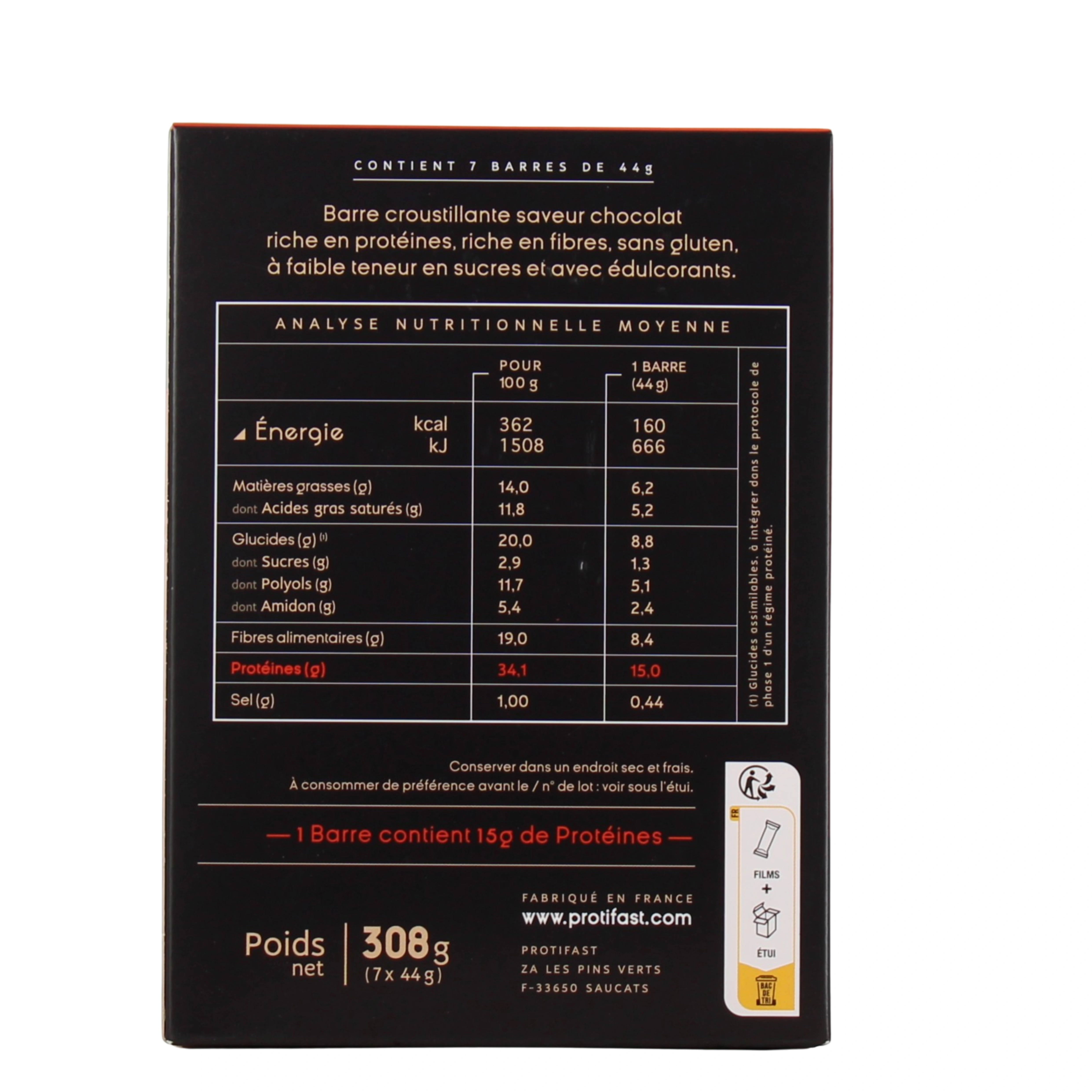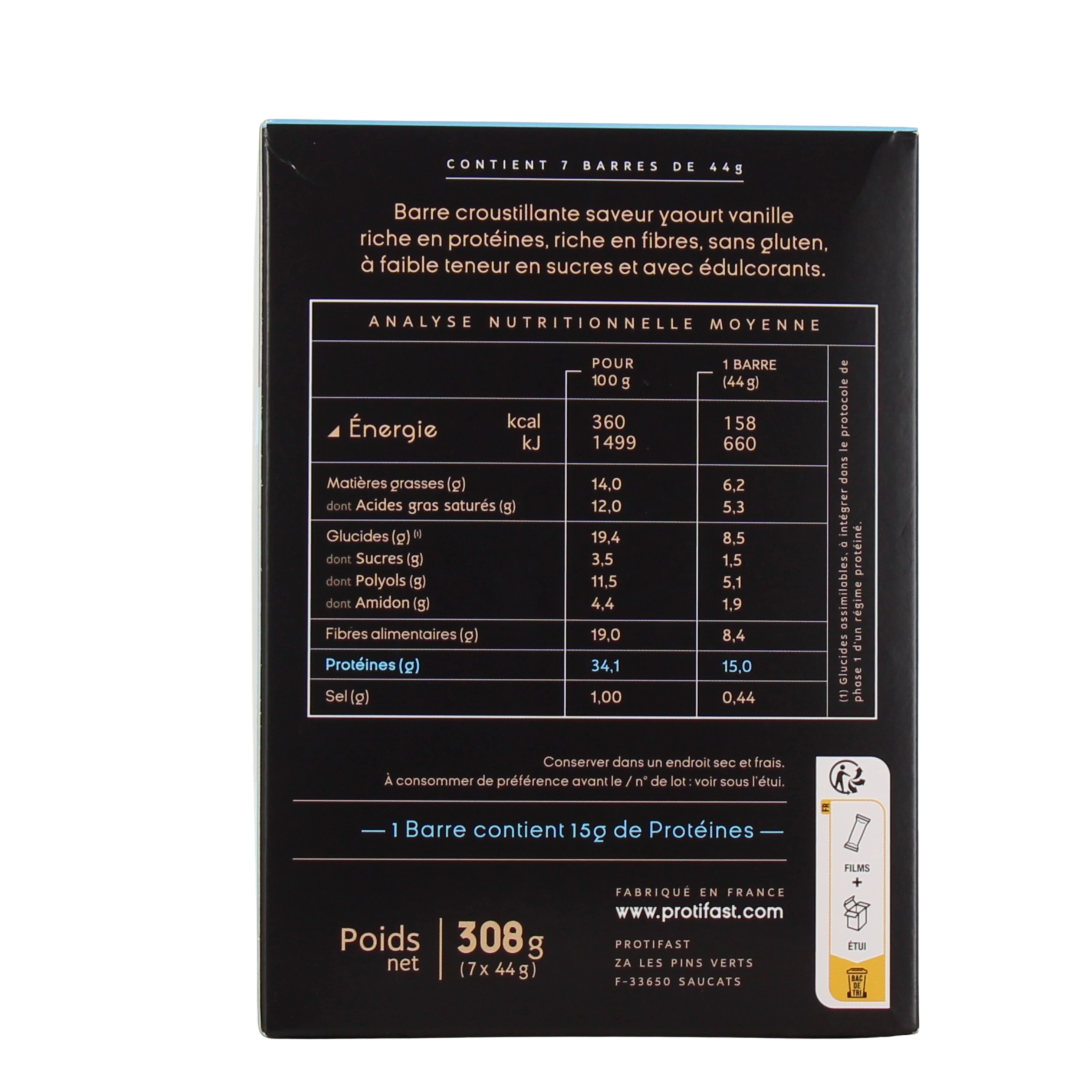 - Boîte de 7 barres de 42 g riches en protéines, parfum au choix (Chocolat praliné, Citron meringué, Chocolat intense, Yaourt vanille ou Chocolat cassis) ;