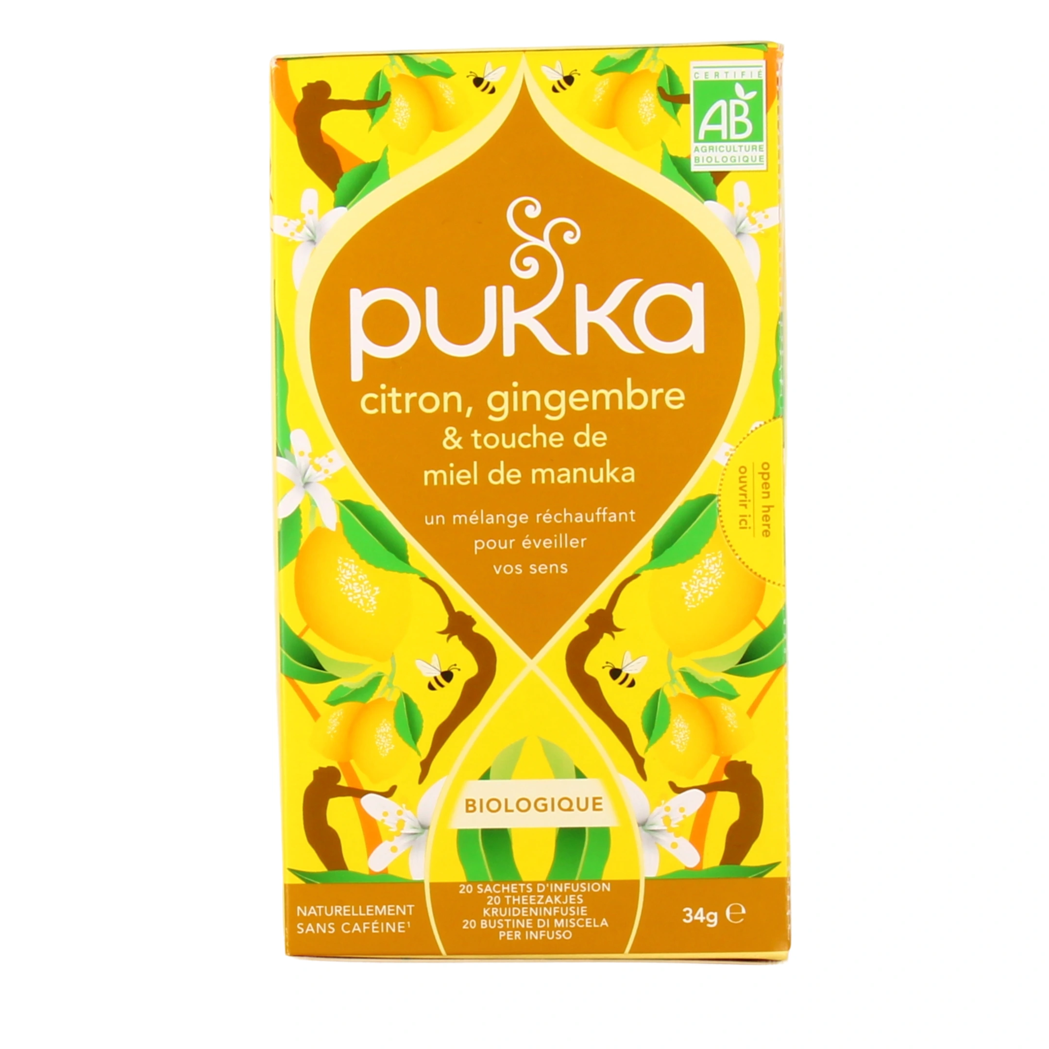 L'infusion Citron, Gingembre et Miel de Manuka Bio proposée par Pukka est un mélange soigneusement mis au point pour vous réchauffer et éveiller vos sens en douceur.