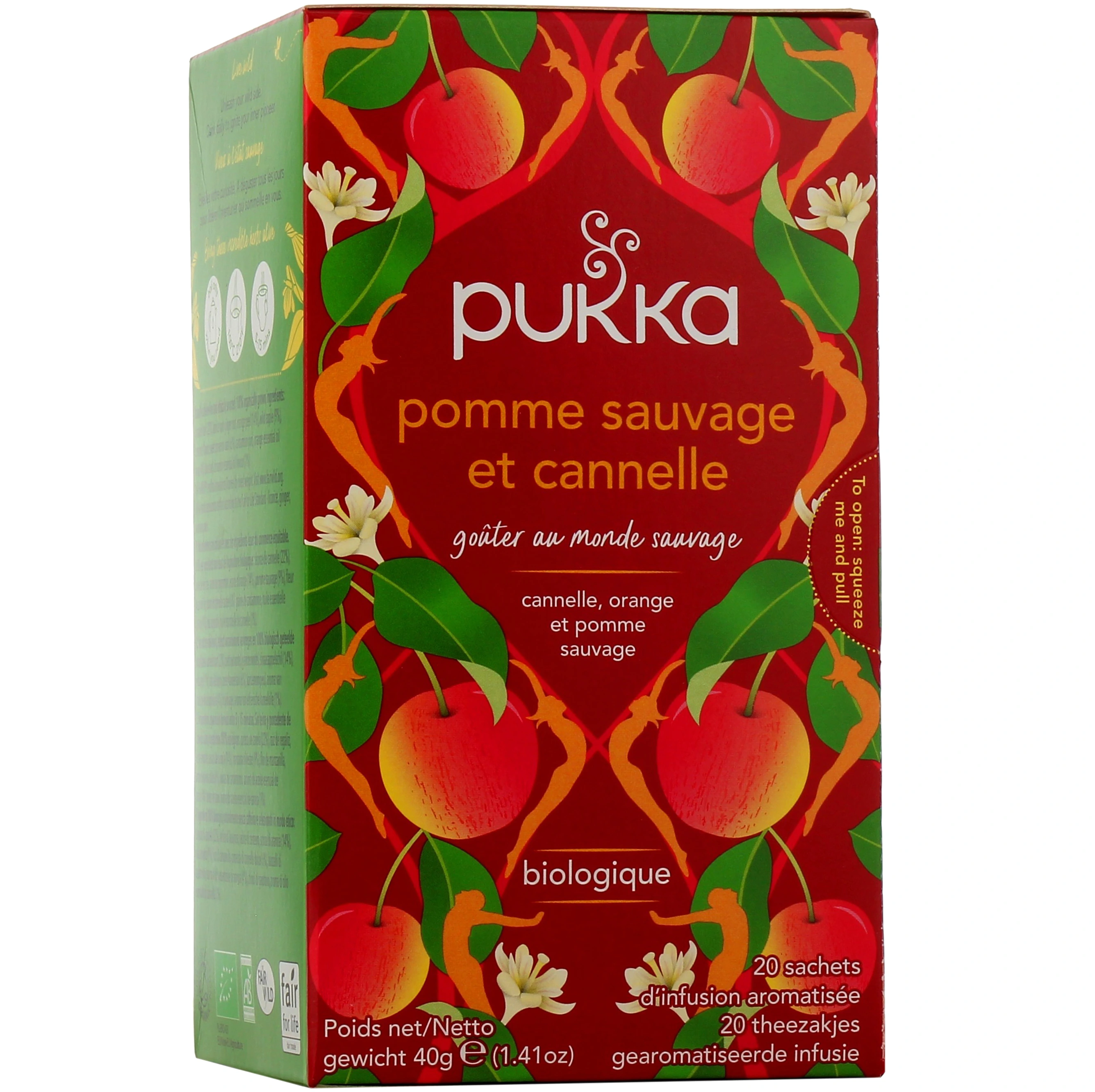 Cette infusion Pomme Sauvage et Cannelle Bio de Pukka est à retrouver dans les présentations suivantes chez Pharmacie des Drakkars : boîte de 20 sachets d'infusion aromatisée.