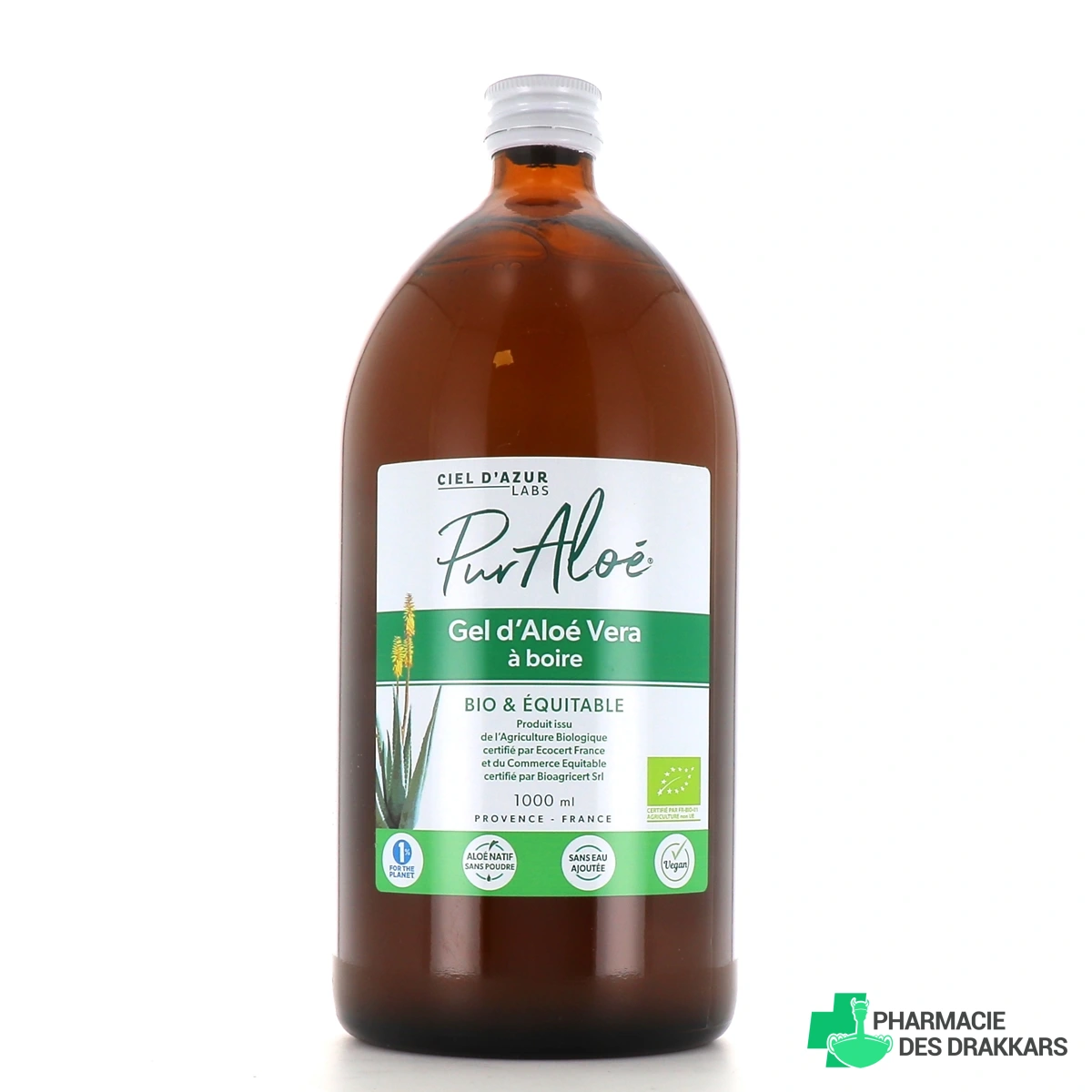 Le gel d'aloe vera à boire Pur Aloé est garanti sans eau ajoutée et fabriqué exclusivement avec de l'aloe vera natif, c'est-à-dire non issu de poudre. C'est un produit de haute qualité bénéficiant d'une double certification. En effet, il est certifié 'Agriculture Biologique' par Ecocert France, et 'Commerce Equitable' par l'organisme Bioagricert S.r.l.. Par ailleurs, il est fidèle aux valeurs défendues par la marque Pur Aloé, qui est membre du mouvement '1 % pour la planète' et fait en sorte de réduire son empreinte carbone.