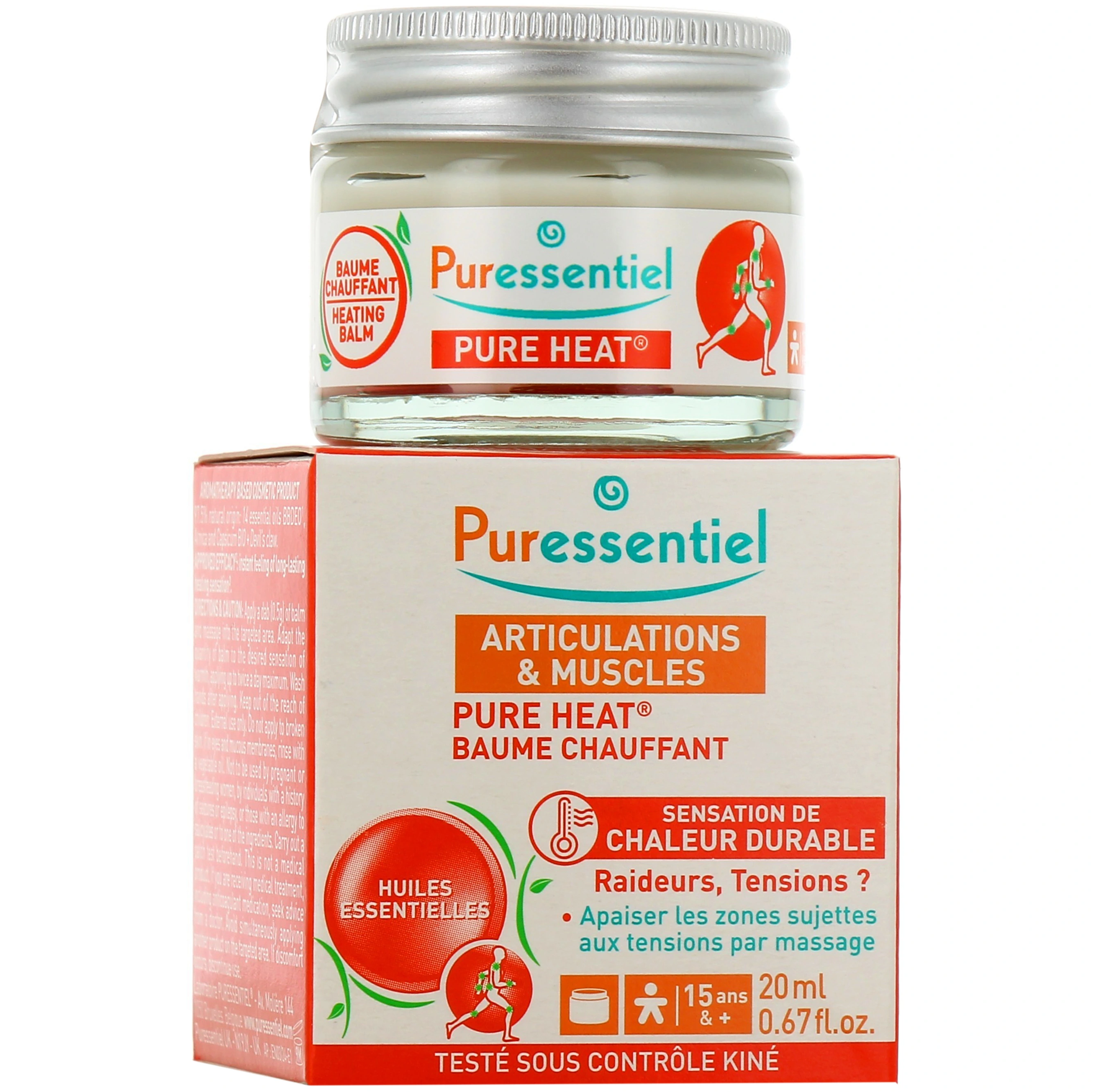 Le Baume Chauffant Pure Heat Articulations & Muscles Puressentiel soulage les tensions et raideurs musculaires grâce à la combinaison d'huiles essentielles et de 3 actifs chauffants. Il convient aux adultes et aux adolescents de plus de 15 ans.