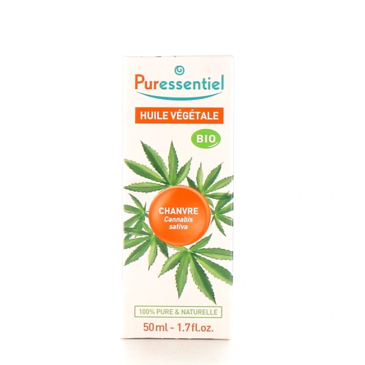 Conditionnement disponible sur votre pharmacie en ligne pour l'huile végétale de chanvre Bio Puressentiel : Flacon de 50 ml.