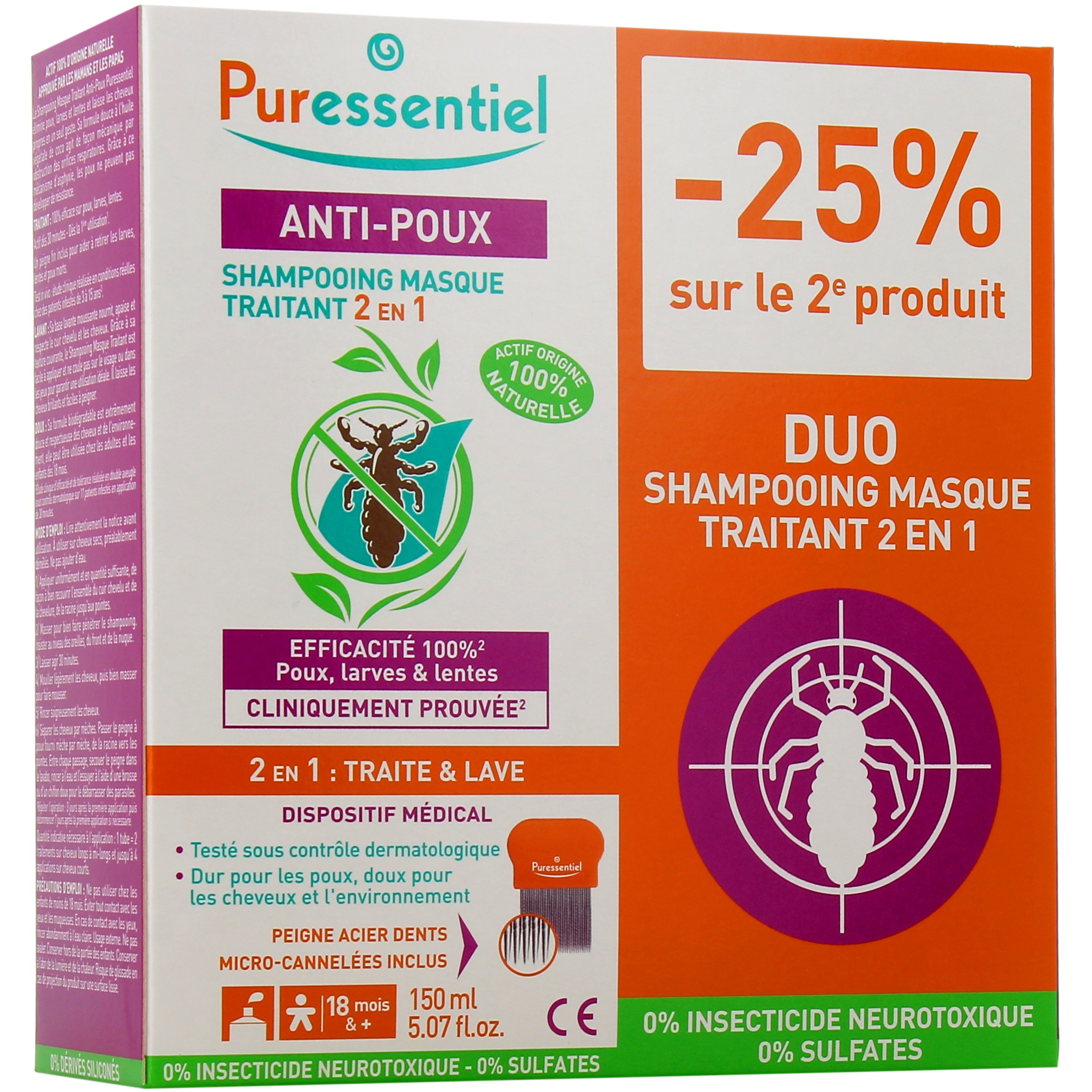 Ce kit anti-poux de Puressentiel regroupe un shampooing masque traitant ainsi qu'un peigne anti-poux, pour vous débarrasser efficacement des poux, des larves et des lentes. Sa formule double action permet à la fois de traiter et de laver la chevelure.