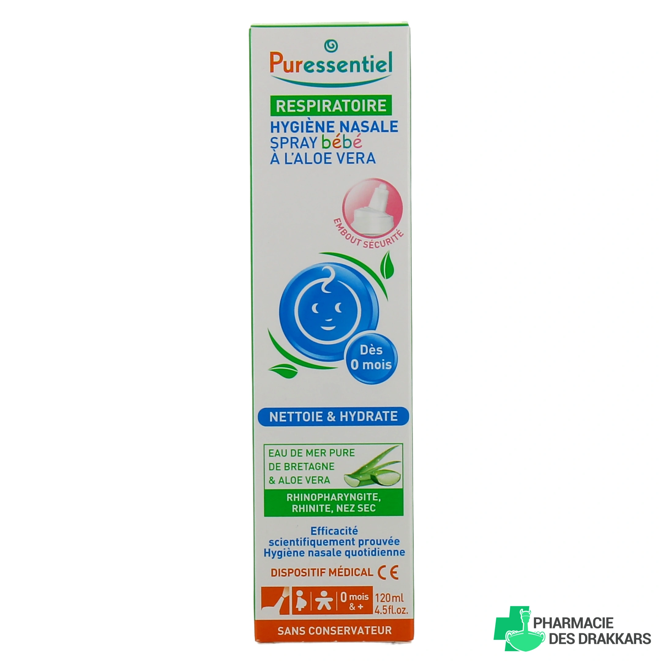 Le spray hygiène nasale bébé de la marque Puressentiel fait partie de la gamme Respiratoire. Il s'agit d'un dispositif médical destiné à l'hygiène nasale quotidienne des tout-petits, dès la naissance.