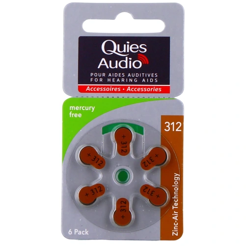 Les piles auditives Quies Audio Modèle 312 sont des piles ou batteries de rechange compatibles avec toutes les aides auditives. Ce sont des piles sans mercure et qui vous offrent une autonomie longue durée. Rappel : pour préserver la durée de vie de vos piles, il est conseillé d'éteindre les appareils ou prothèses quand vous ne vous en servez pas.