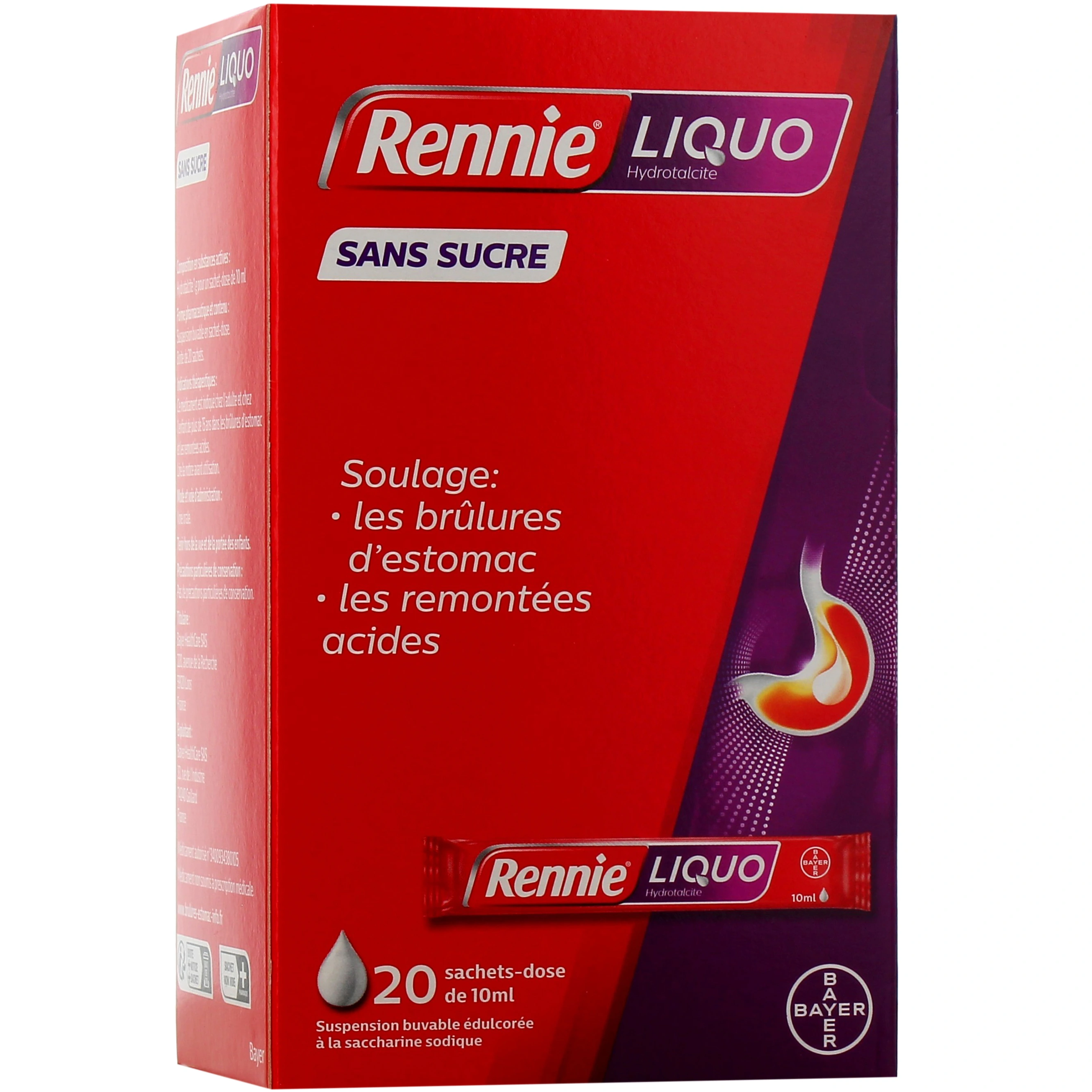 RennieLiquo sans sucre en sachets est un médicament conçu par les laboratoires Bayer afin de soulager les personnes souffrant de brûlures d'estomac ou encore de remontées acides.