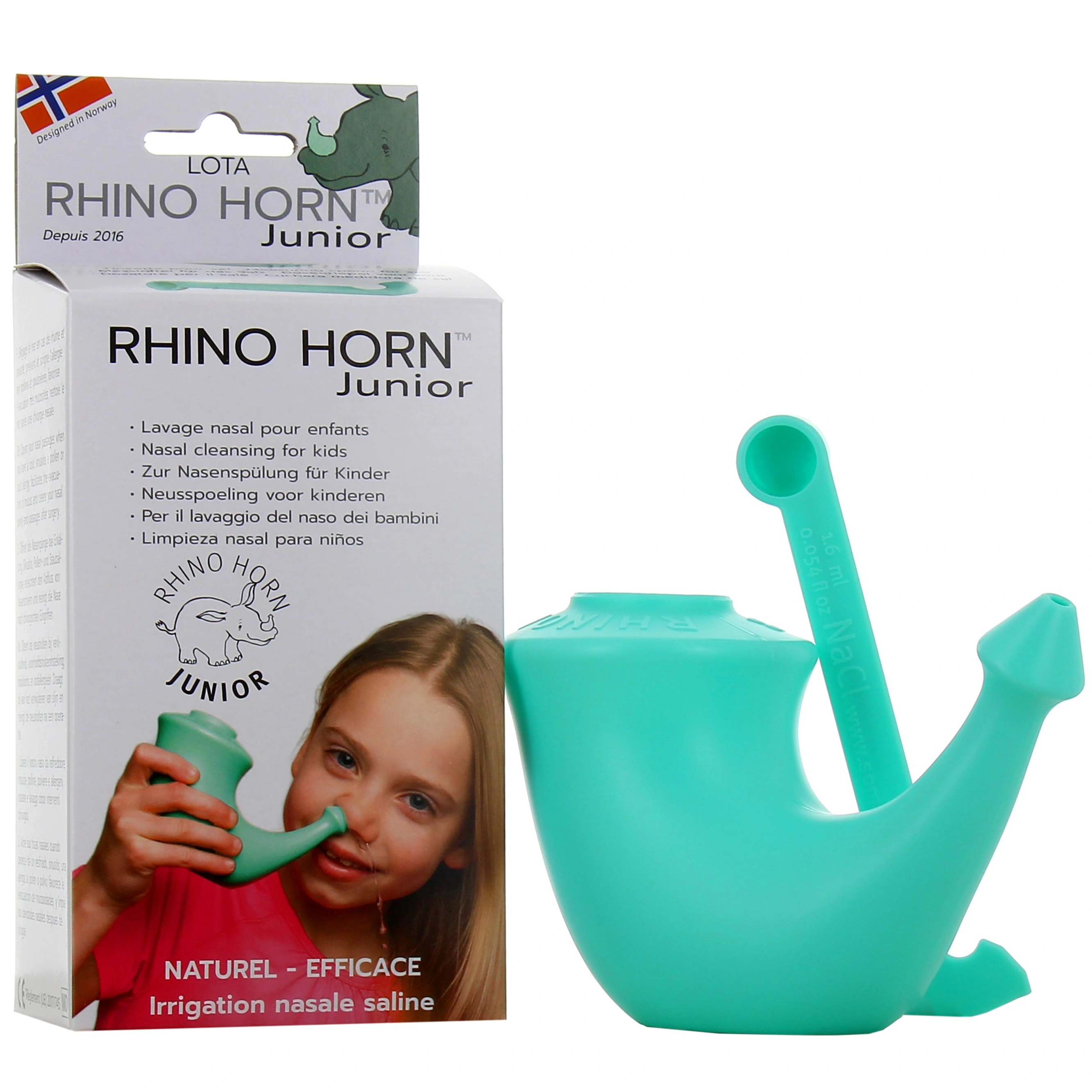 Présentation proposée sur votre pharmacie en ligne : Rhino Horn Adulte pour lavage nasal (coloris bleu ou rouge au choix). Rhino Horn Junior pour enfant de 4 à 12 ans (coloris bleu clair).