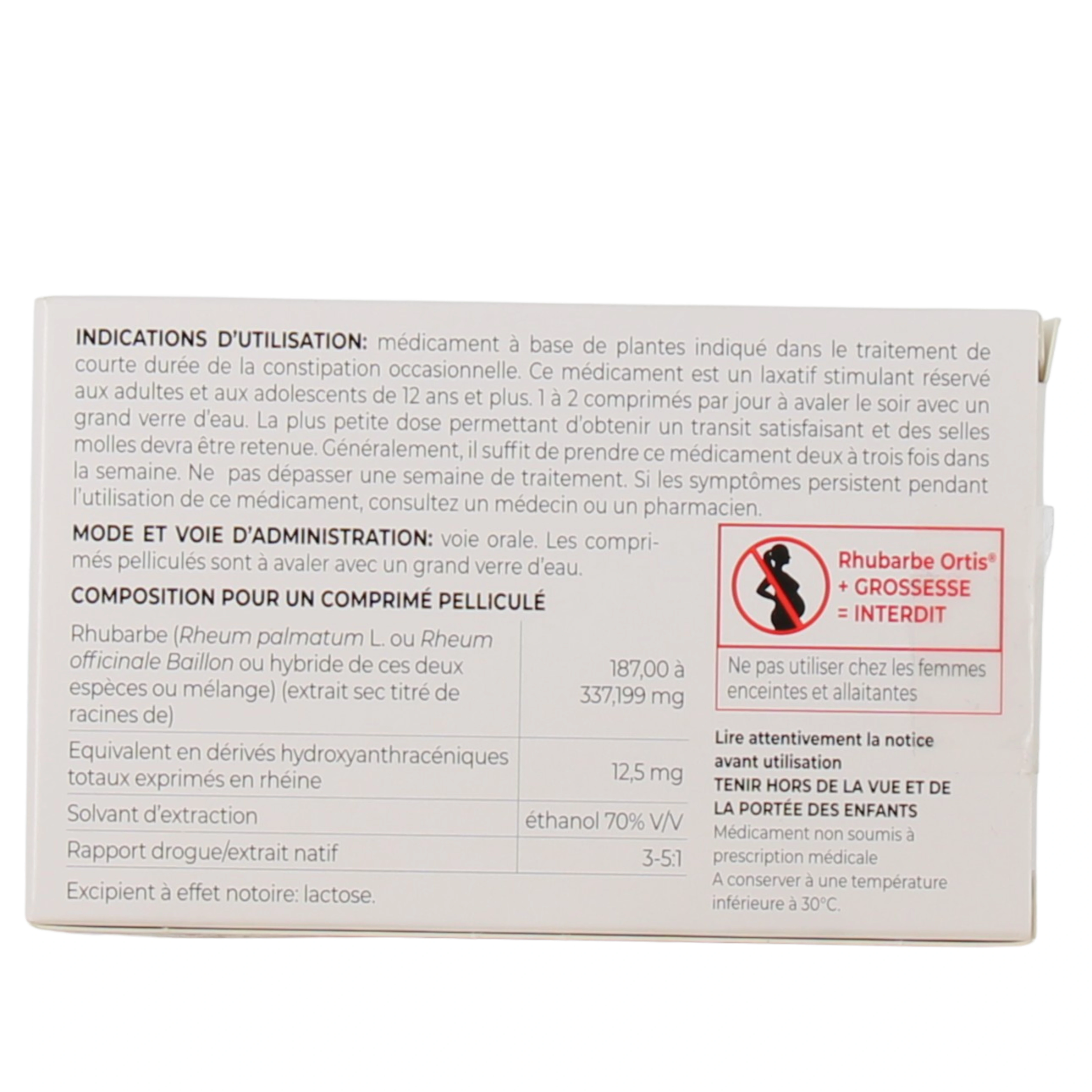Présentation disponible sur notre pharmacie en ligne pour Rhubarbe Ortis : boîte de 30 comprimés pelliculés.