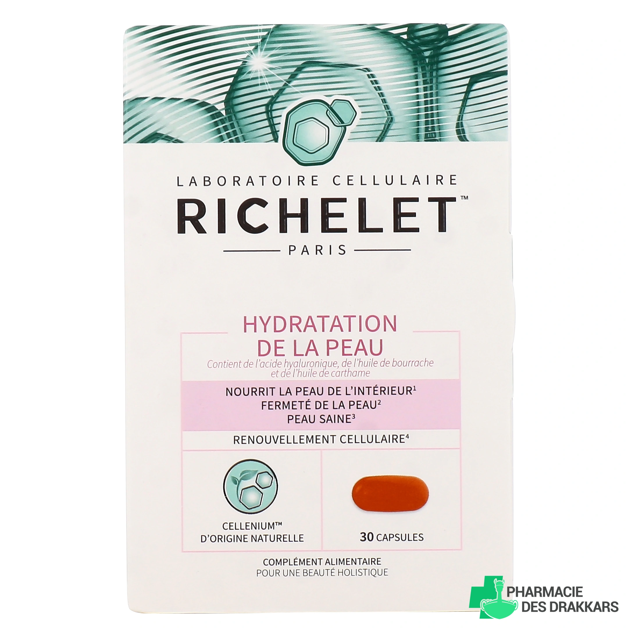 Présentations proposées pour Richelet Hydratation de la Peau sur notre pharmacie en ligne : Boîte de 30 ou 60 capsules