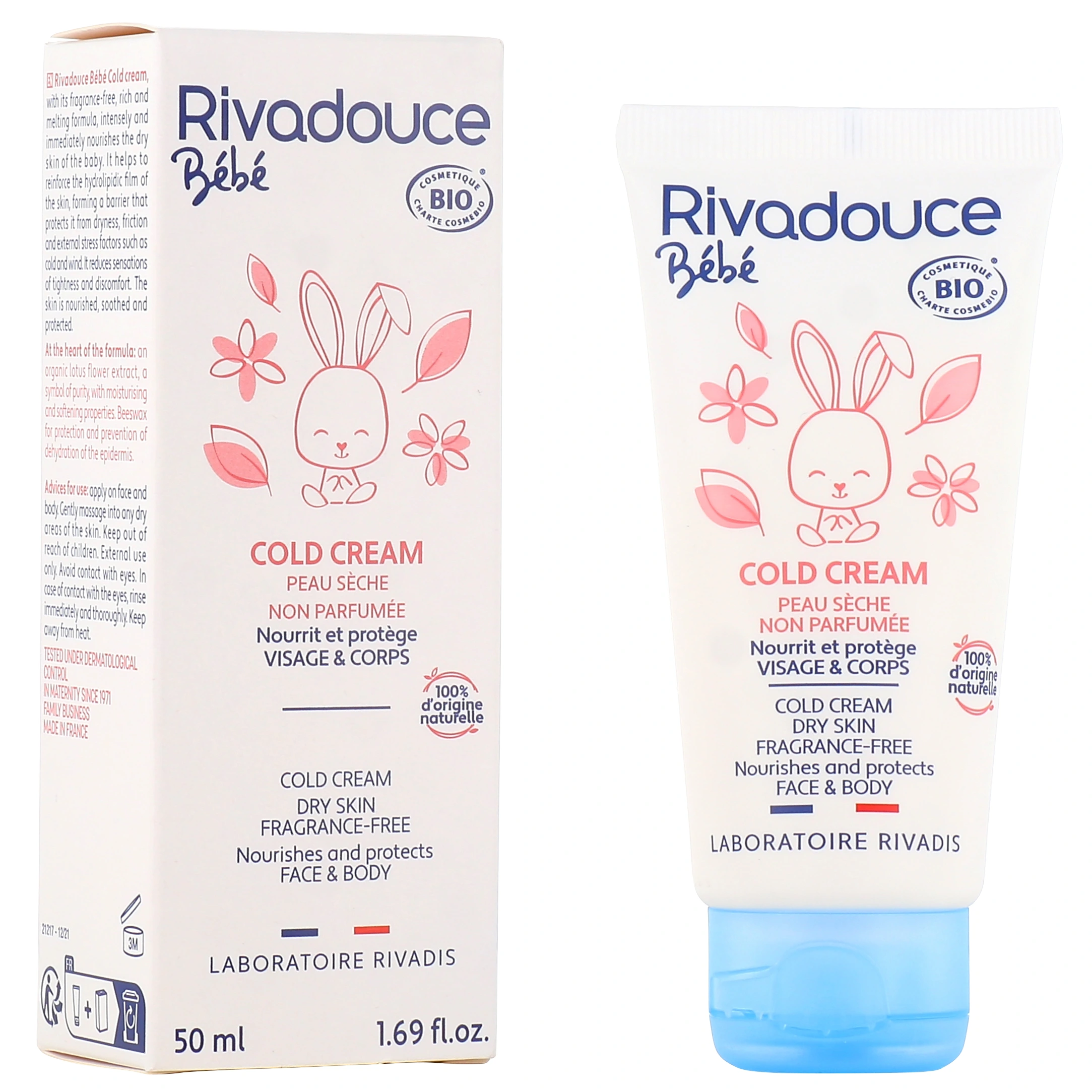 Pour nourrir et protéger la peau de votre tout petit, ne manquez pas la crème Cold Cream de la gamme Rivadouce Bébé Bio, un soin Bio sans parfum.