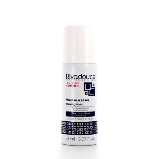 Conditionnement proposé par la Pharmacie des Drakkars pour la mousse à raser peaux sensibles Rivadouce : Flacon de 150ml.