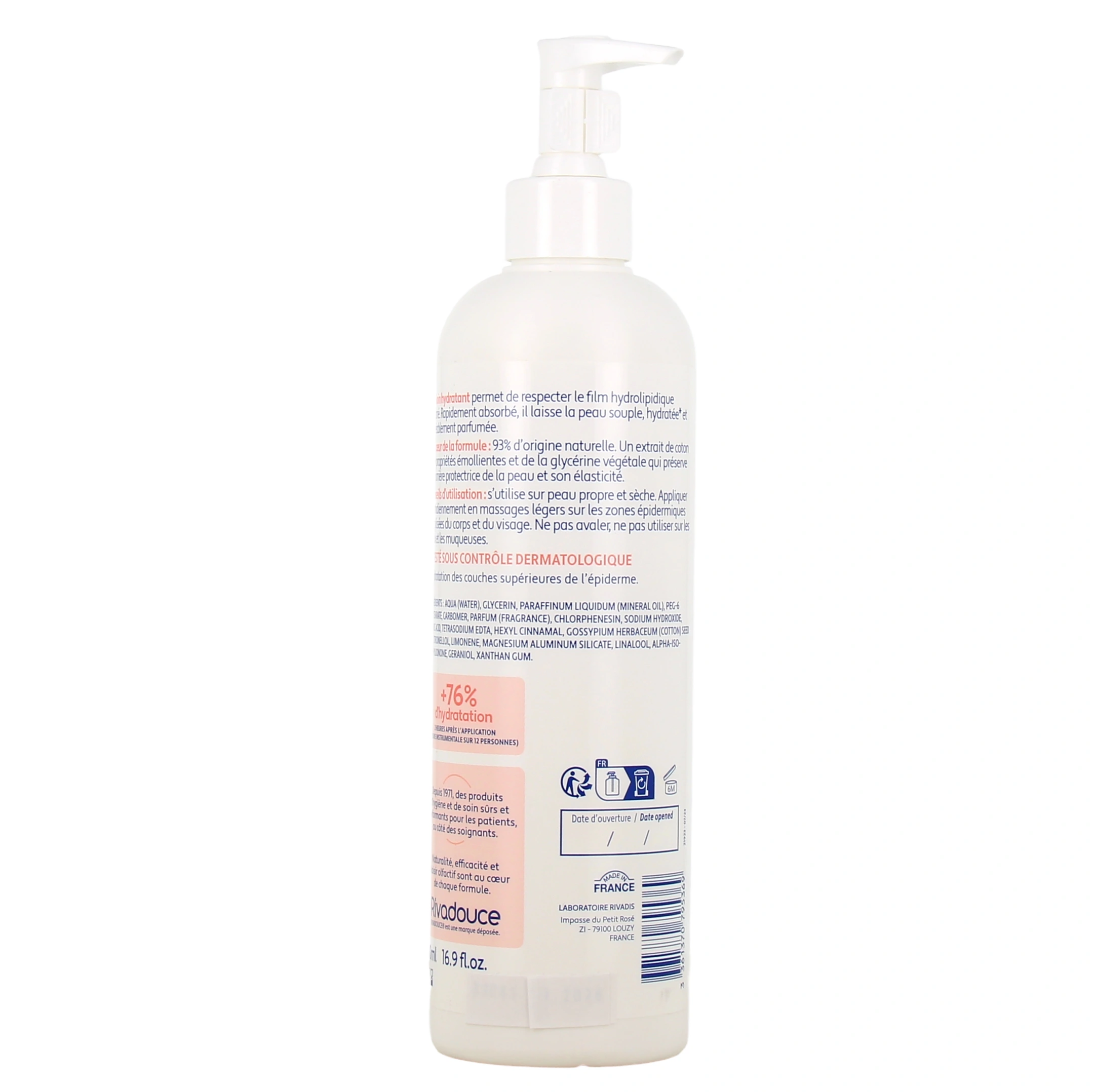 Le soin hydratant Visage et Corps Rivadouce est à retrouver dans les présentations suivantes chez Pharmacie des Drakkars : flacon pompe de 500 ml de lait soin hydratant.