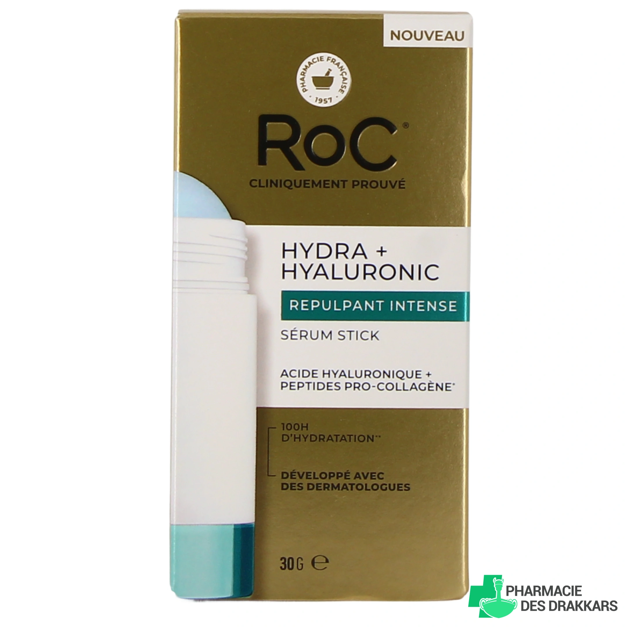Le sérum ROC Hydra + Hyaluronic est un soin repulpant intense conçu pour hydrater durablement et lisser visiblement les ridules qui se décline en une formule concentrée en flacon-pipette ou en stick pour s'adapter à toutes les routines. Développées avec des dermatologues, les formules associent 7 formes d'acide hyaluronique à des actifs pro-collagène pour une peau plus ferme et rebondie. Sans parfum et testées sur peaux sensibles, elles conviennent à tous les types de peau, notamment celles en manque de fermeté et de confort.