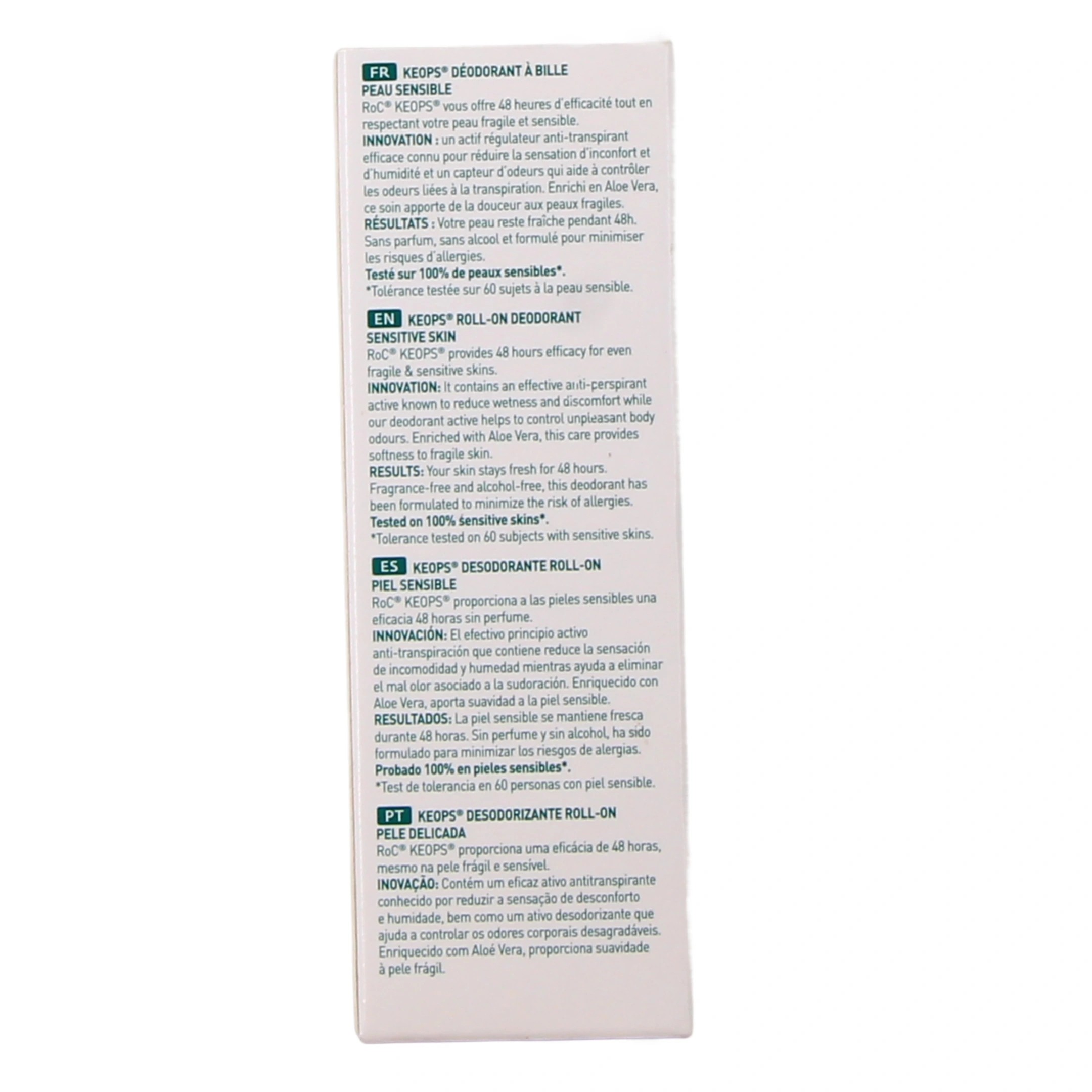 Le déodorant à bille Keops Sensitive RoC vous aide à garder la peau fraîche jusqu'à 48 heures. Il est spécialement formulé afin de respecter les peaux sensibles, et sa tolérance a fait l'objet de tests sous contrôle hypoallergénique. Il ne contient pas de parfum ni alcool, et n'irrite pas la peau après l'application.