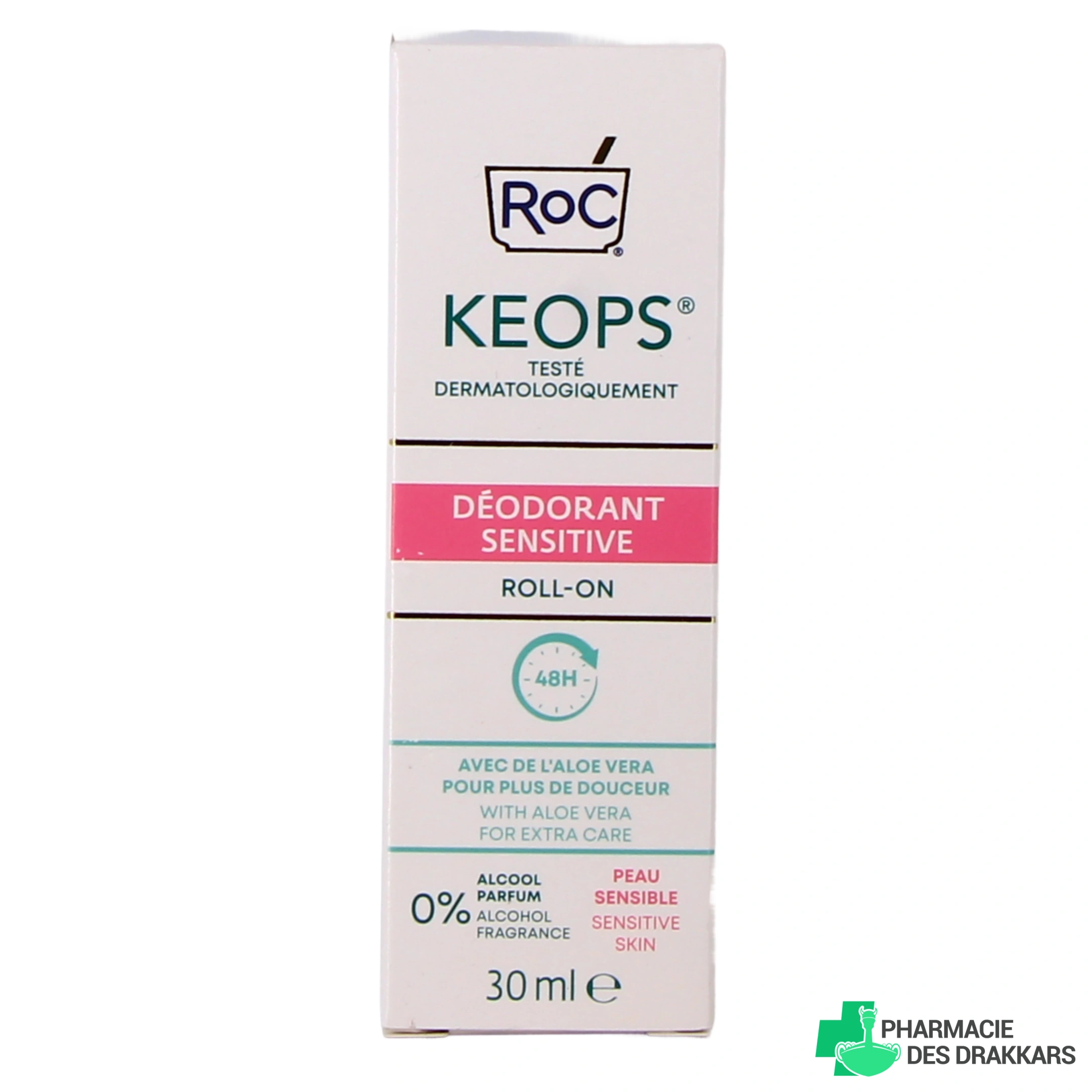 Le déodorant à bille Keops Sensitive RoC vous est proposé en différentes présentations chez Pharmacie des Drakkars : déodorant en roll-on de 30 ml à l'unité, ou lot de 2 déodorants.
