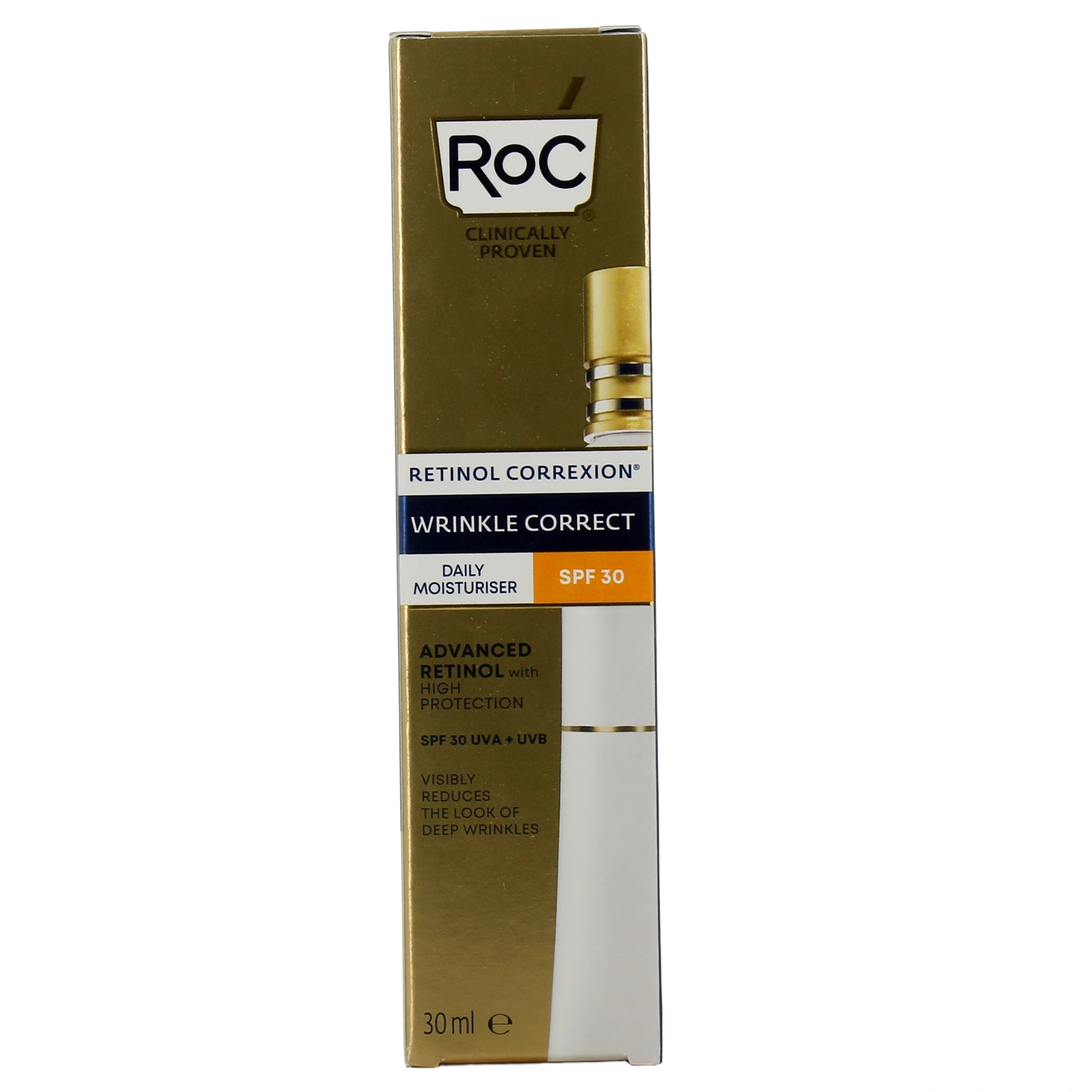 Développé en collaboration avec des dermatologues, le soin hydratant quotidien SPF30 Retinol Correxion ROC permet d'hydrater intensément la peau et de lisser les rides. Il apporte également une haute protection solaire à large spectre, protégeant la peau des dommages liés aux UVA et UVB : coups de soleil, lésions cellulaires et photovieillissement (rides, taches brunes, relâchement).