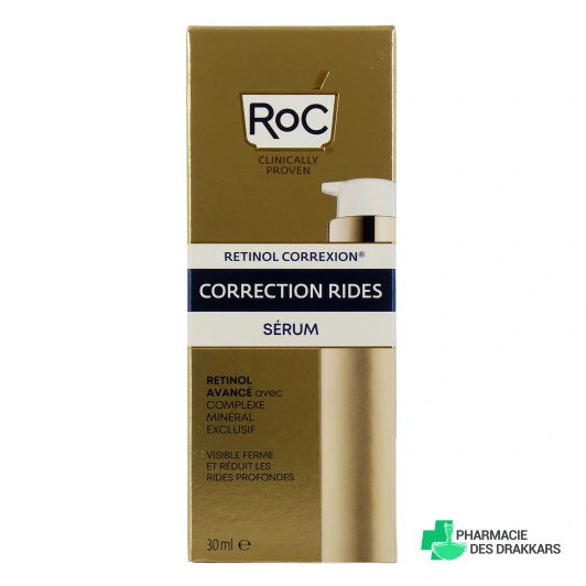 Présentation proposée pour ROC Retinol Correxion Sérum Rides Profondes sur la pharmacie en ligne des Drakkars : Flacon-pompe 30 ml