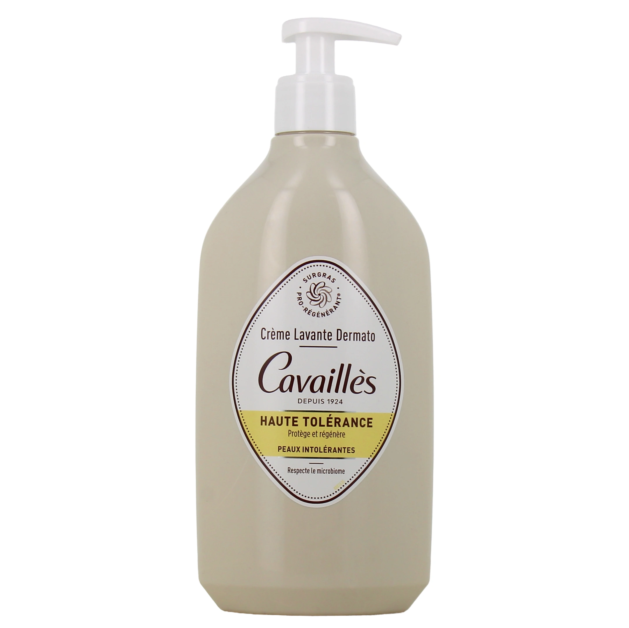Présentation proposée pour la crème lavante dermato Rogé Cavaillès sur notre pharmacie en ligne : Flacon-pompe de 500 ml